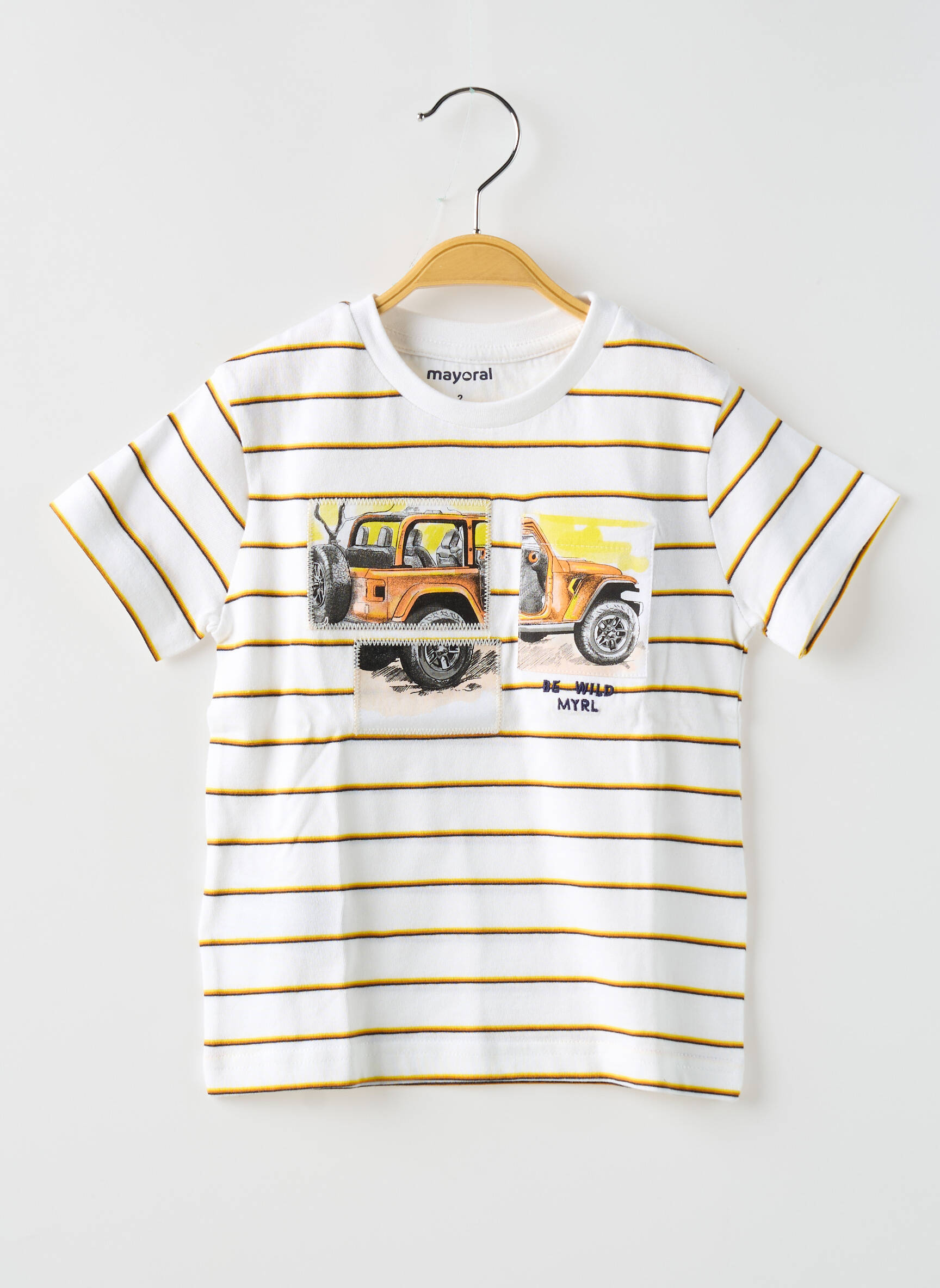 Ce t-shirt garçon de la marque Mayoral est une vraie bonne affaire pour compléter la garde-robe de votre enfant sans vous ruiner, avec son motif ludique de 4x4 qui plaît aux aventuriers en herbe et son imprimé à rayures jaunes et blanches qui lui donne un style décontracté et tendance. Profitez de ce bon plan pour offrir à votre garçon un vêtement de qualité, à prix mini, idéal pour le quotidien comme pour les escapades du week-end.
