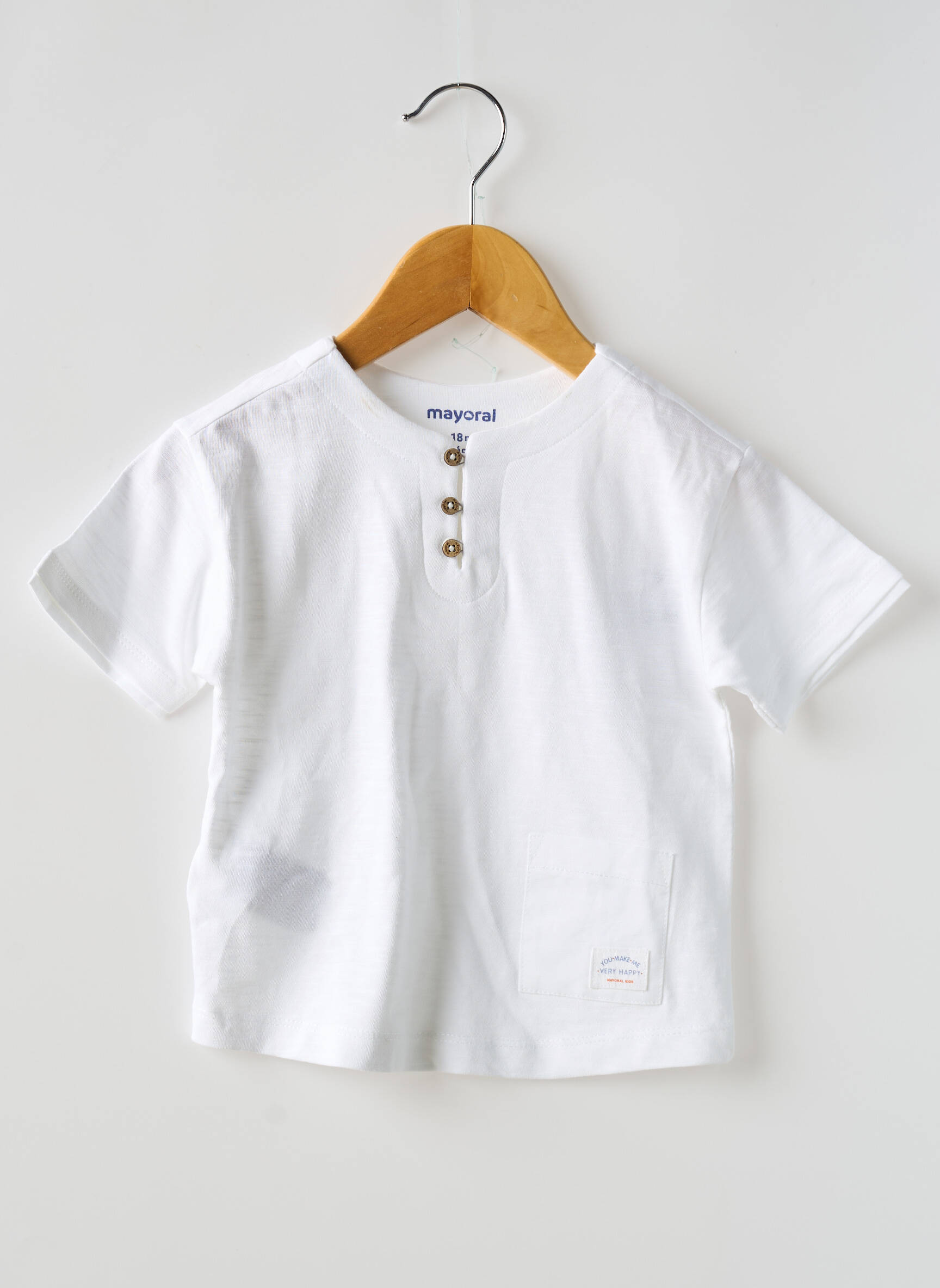 Profitez d’un vrai bon plan mode avec ce T-shirt garçon signé MAYORAL à petit prix, parfait pour offrir un style soigné sans se ruiner. Ce modèle propose une coupe droite intemporelle, une couleur blanche facile à assortir avec toutes les tenues, et se distingue par son encolure ronde rehaussée de trois boutons effet bois pour une touche d’originalité. Idéal en toutes circonstances, il apporte confort et fraîcheur pour accompagner votre enfant au quotidien tout en maitrisant votre budget.