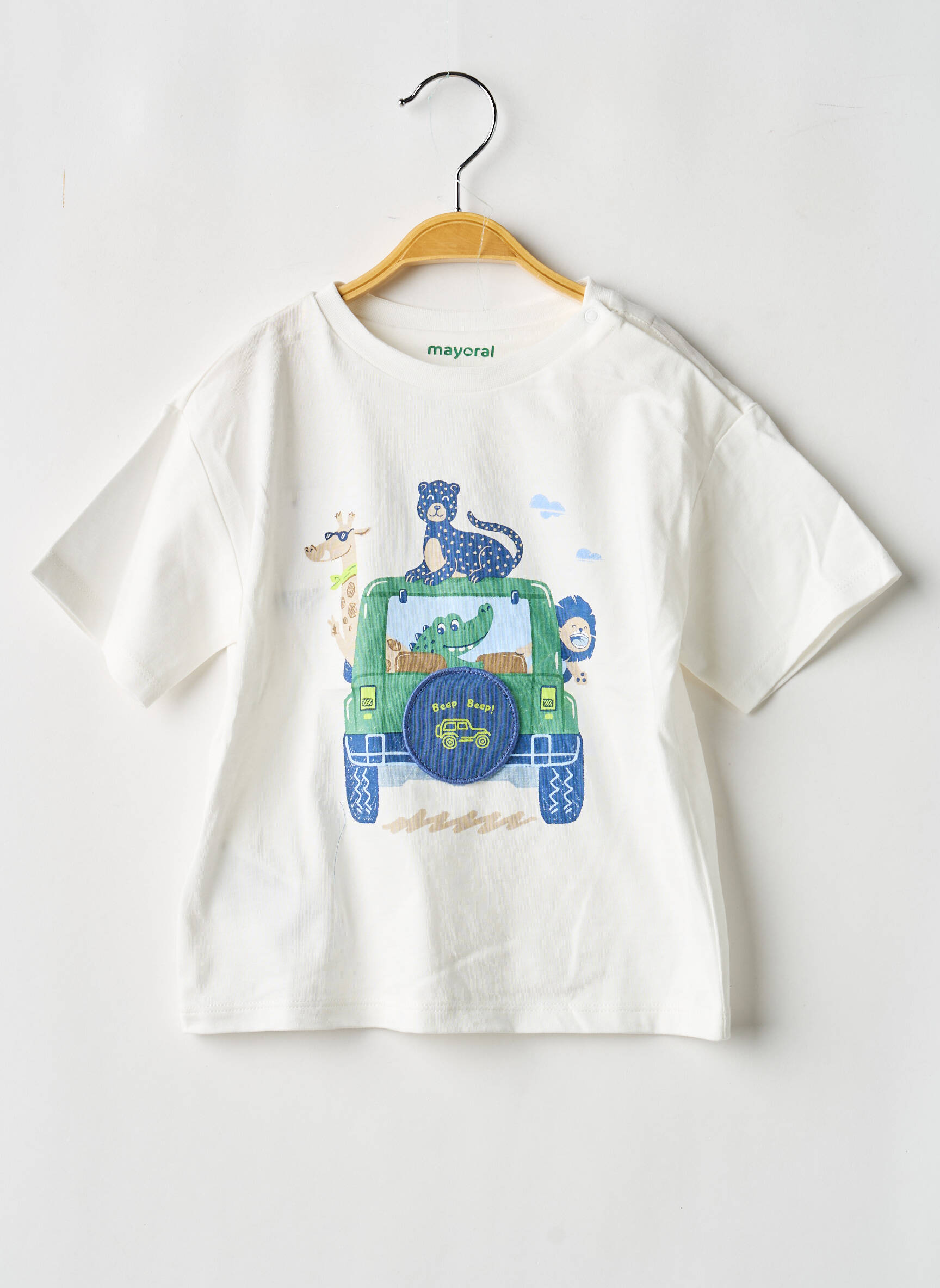 Craquez pour ce T-shirt Mayoral pour garçon, une pièce pleine de gaieté à prix mini ! Son design ludique met en scène une jeep et des animaux rigolos, parfait pour apporter une touche d’aventure au quotidien. Une opportunité à saisir pour un style tendance et confortable, sans se ruiner.