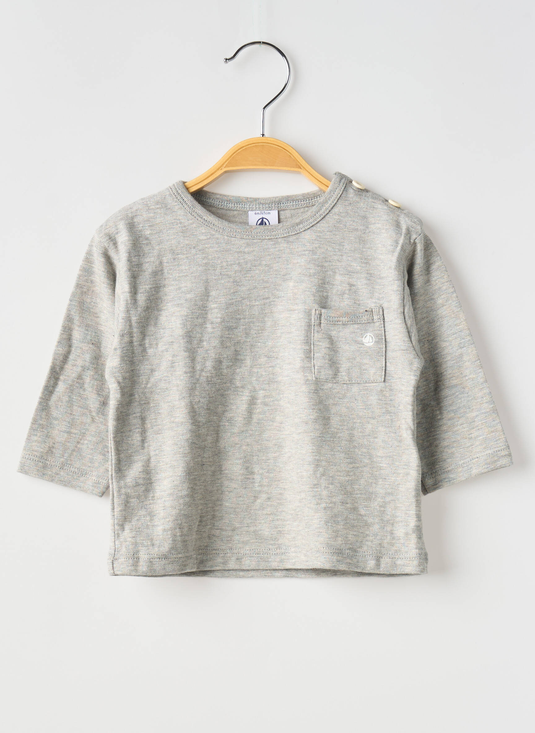 T-shirt Petit Bateau Gris Manches Longues