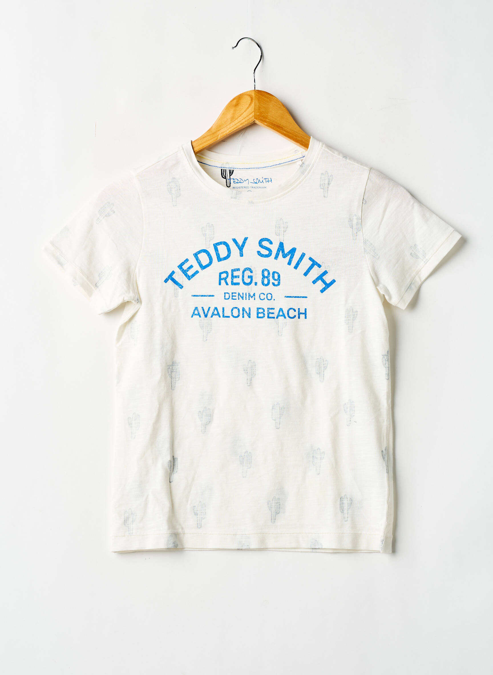 Voici une occasion à saisir pour offrir à votre garçon un T-shirt tendance de la marque TEDDY SMITH à petit prix. Ce modèle arbore une coupe classique et confortable, rehaussée d’un imprimé bleu dynamique « TEDDY SMITH REG. 89 DENIM CO. AVALON BEACH » sur le devant, pour un style casual idéal au quotidien. Son fond blanc se distingue subtilement par des motifs discrets qui ajoutent une touche originale sans en faire trop. Parfait pour renouveler la garde-robe sans se ruiner, ce T-shirt combine qualité et bon plan pour un look à la fois actuel et accessible.