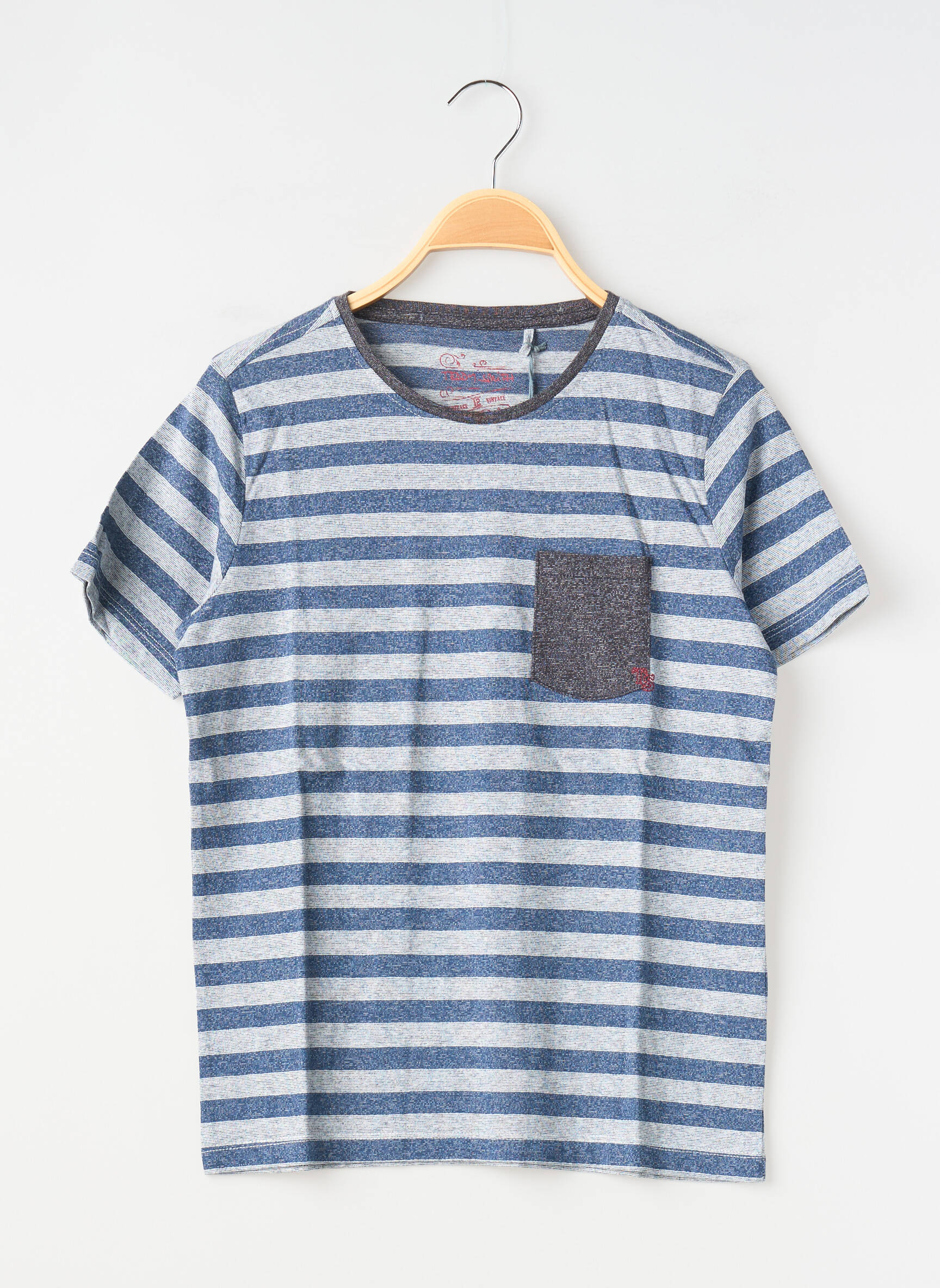 Profitez d’un bon plan avec ce T-shirt TEDDY SMITH pour garçon, idéal pour apporter une touche moderne au dressing sans se ruiner. Grâce à ses rayures bleu et gris et sa poche poitrine contrastée, ce modèle allie style décontracté et petit prix, parfait pour se faire plaisir ou renouveler la garde-robe à moindre coût.