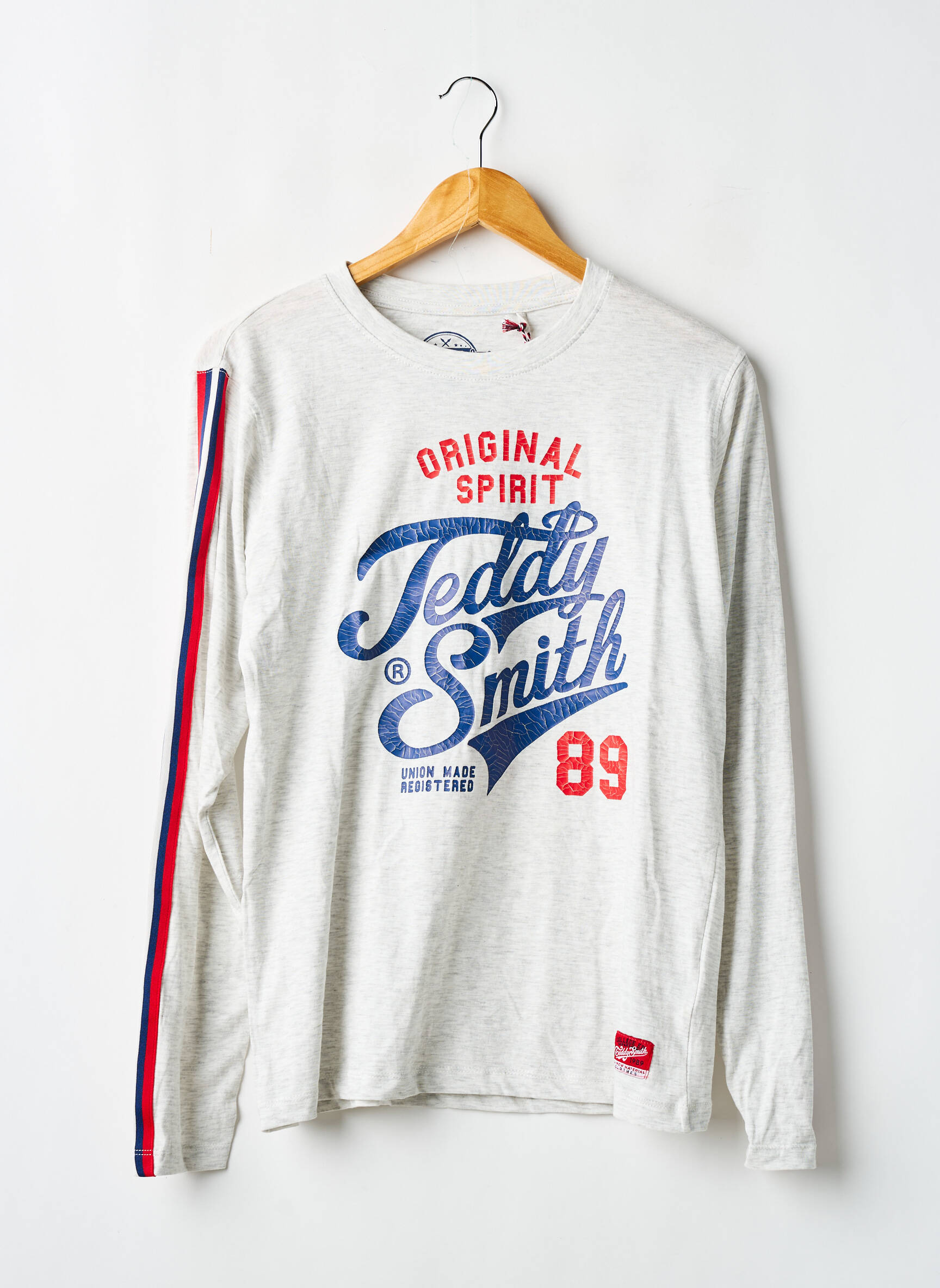 Profitez d’un vrai bon plan avec ce T-shirt TEDDY SMITH pour garçon à prix mini, parfait pour un style tendance sans se ruiner. Ce modèle à manches longues séduit par son inscription graphique bleu et rouge sur le devant ainsi que par la bande colorée qui longe la manche, apportant une touche sporty et originale à la tenue. Il s’accorde facilement avec un jean ou un pantalon casual pour un look dynamique au quotidien.
