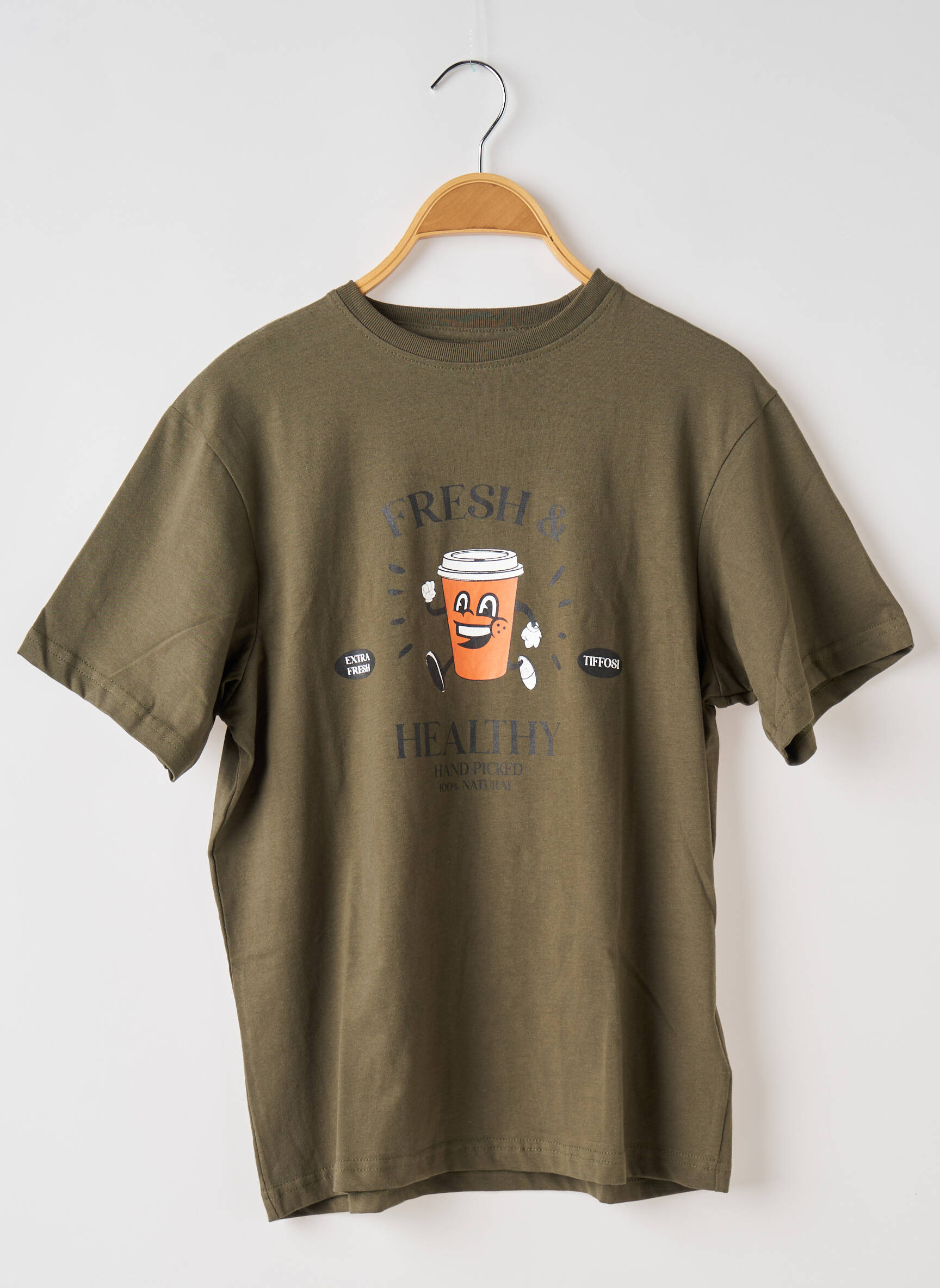 Profitez d’un vrai bon plan avec ce T-shirt garçon TIFFOSI, parfait pour apporter une touche tendance et ludique au quotidien grâce à son motif original représentant un smoothie vitaminé. Sa teinte kaki très actuelle s’associe facilement à toutes les tenues et son illustration « Fresh & Healthy » apporte une note pleine d’énergie et de bonne humeur. Ce T-shirt, proposé à prix canon, est l’idéal pour renouveler le dressing de votre enfant sans vous ruiner.