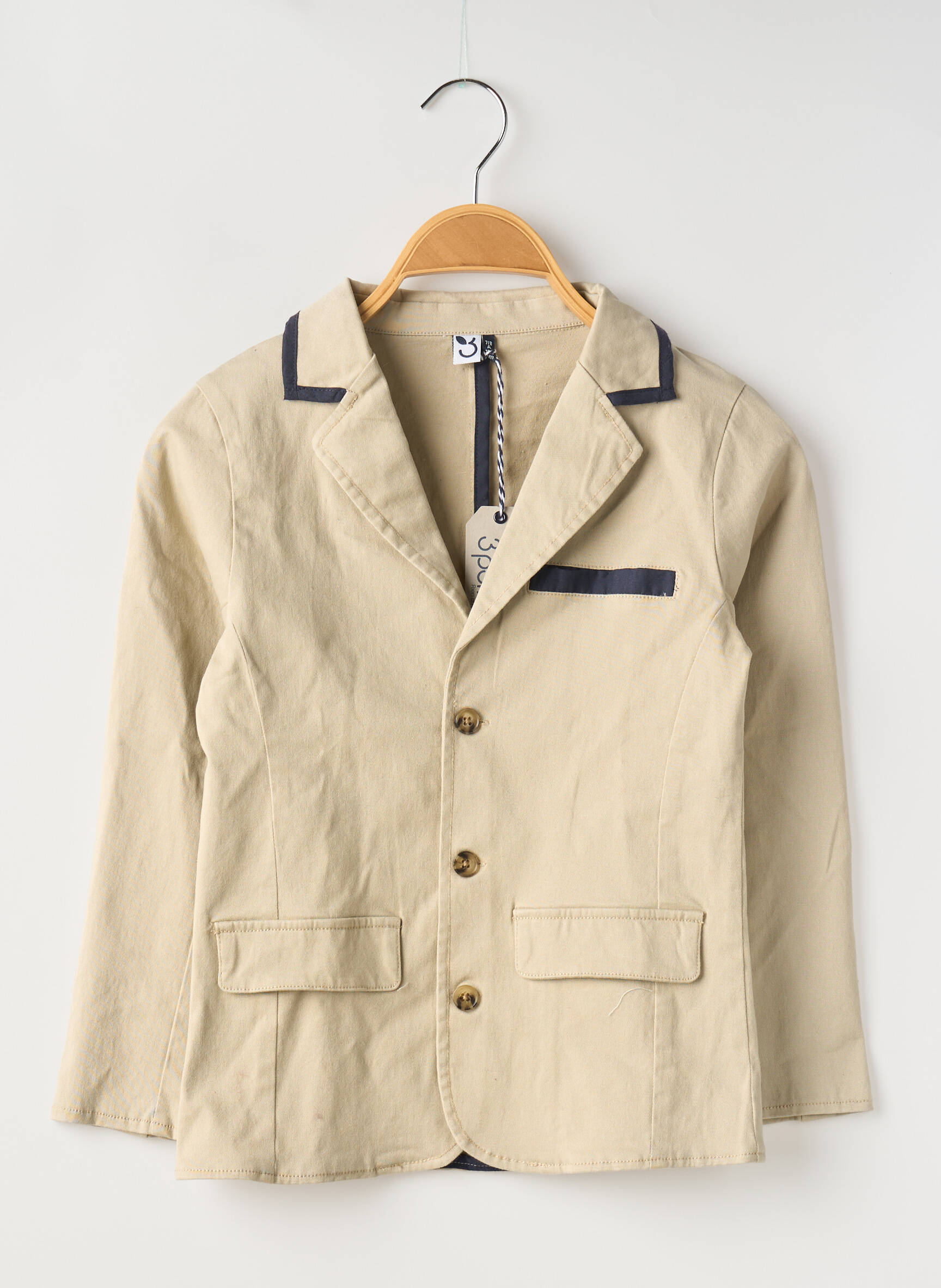 Profitez d’un vrai bon plan avec ce blazer garçon de la marque 3 Pommes, pensé pour offrir élégance et style à petit prix. Son coloris beige intemporel est relevé par des finitions contrastées au niveau du col et de la poche poitrine, apportant une touche chic et moderne idéale pour les grandes occasions comme pour les moments plus décontractés. Sa coupe et ses boutons classiques en font un indispensable du dressing, parfait pour donner à votre enfant un look soigné sans vous ruiner.