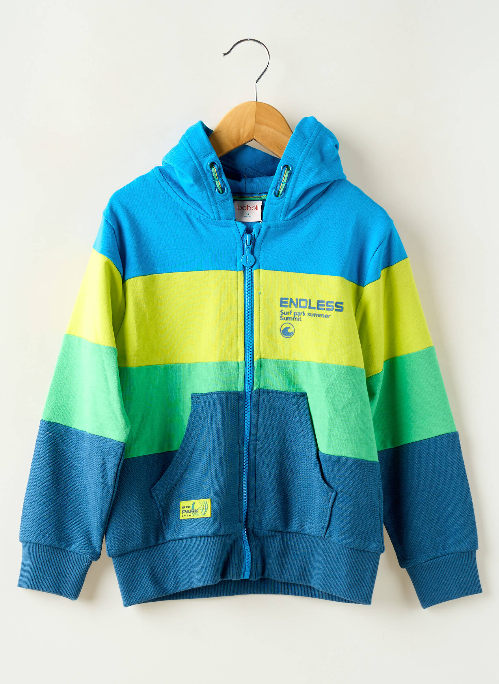 Craquez pour cette veste casual garçon signée BOBOLI, un vrai bon plan pour allier style coloré et petit prix ! Son design à larges bandes bleu, vert et jaune lui donne une allure dynamique et moderne, tandis que la capuche protectrice et la fermeture zippée assurent un confort optimal au quotidien. Avec ses poches pratiques et ses finitions soignées, cette veste est idéale pour accompagner votre enfant lors de toutes ses aventures, sans vous ruiner.