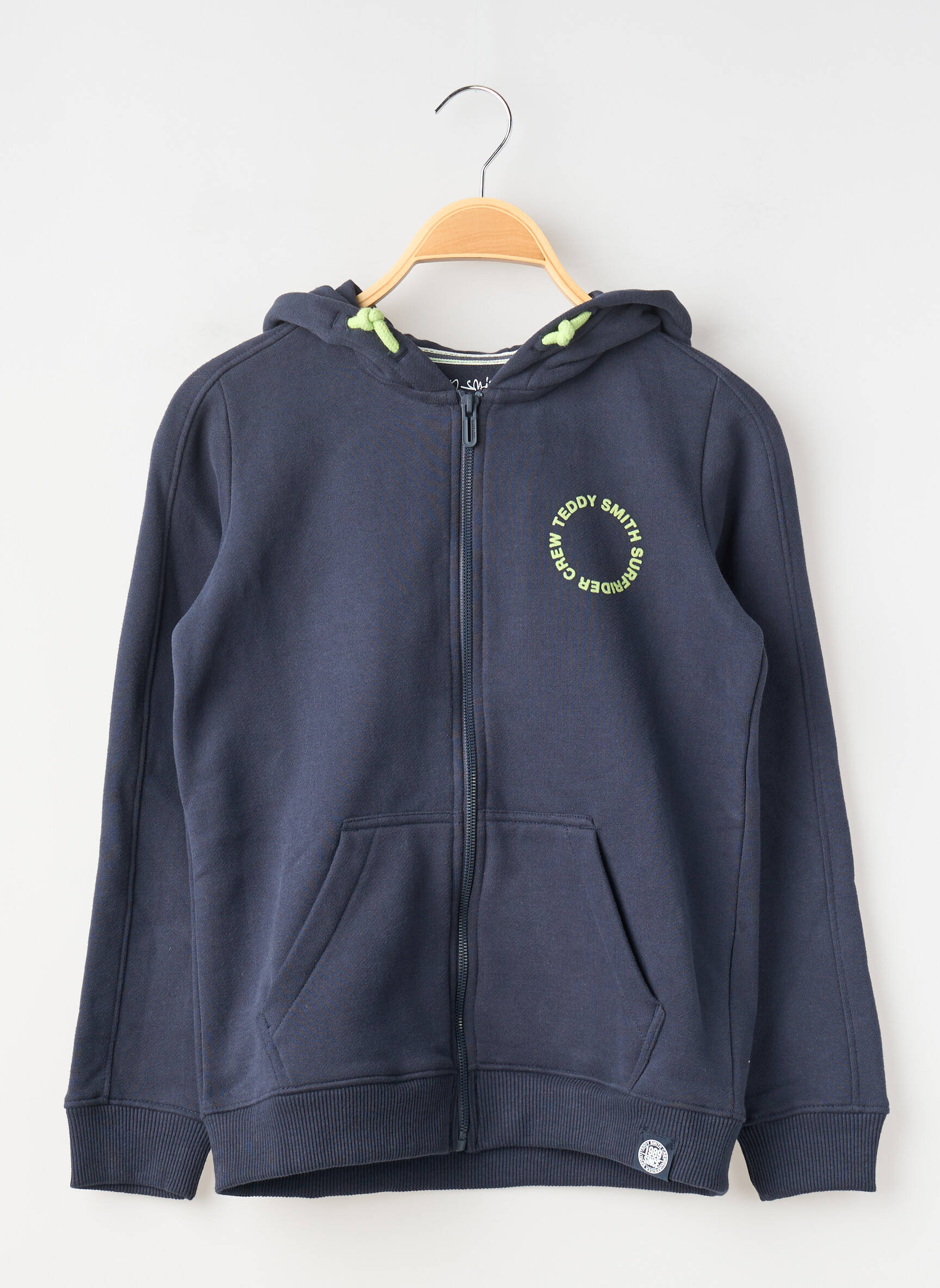 Profitez d’un super bon plan avec cette veste casual pour garçon signée TEDDY SMITH, parfaite pour un look tendance à petit prix. Ce modèle bleu marine séduit par sa coupe confortable, sa capuche pratique et ses poches kangourou idéales pour le quotidien, avec de petits détails comme le marquage discret sur la poitrine et la finition soignée. N’attendez plus pour saisir cette pièce stylée sans vous ruiner.