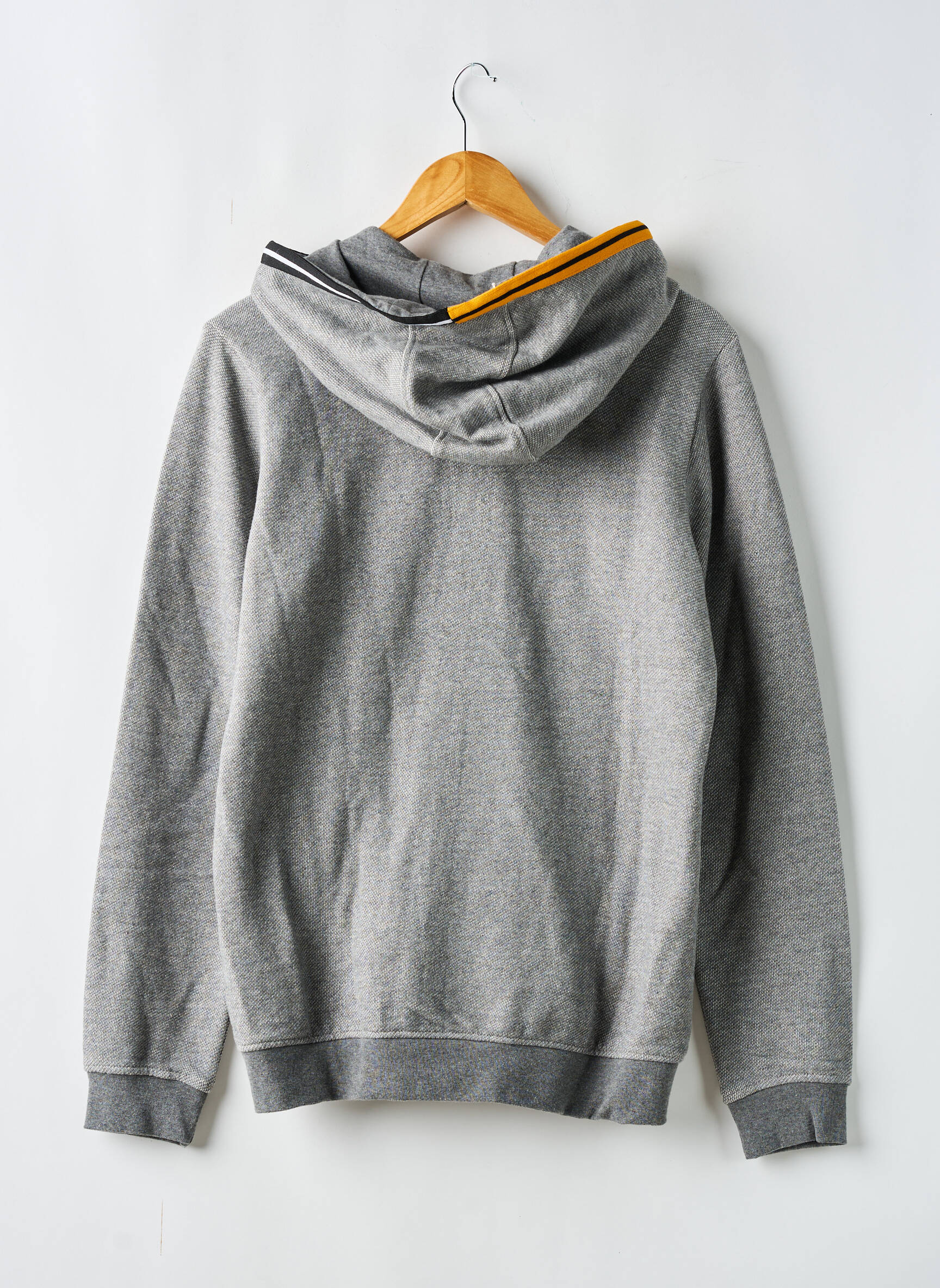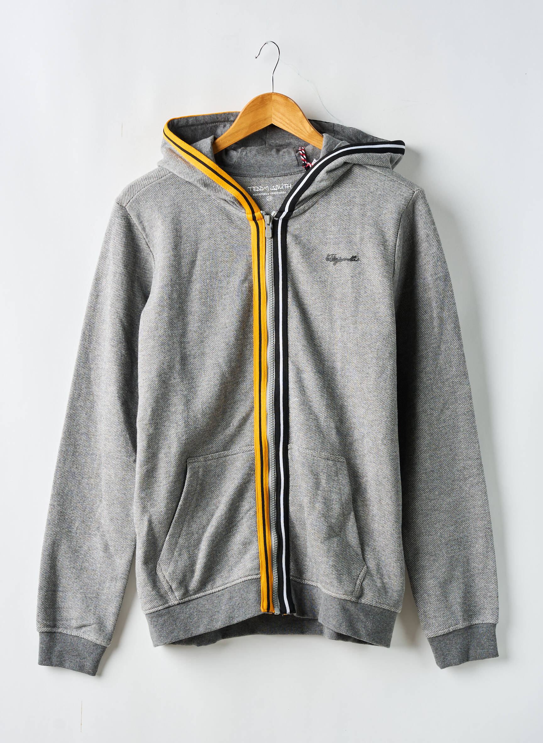 Craquez pour cette veste casual TEDDY SMITH pour garçon, une excellente affaire pour ajouter une touche tendance sans se ruiner. Ce modèle arbore une coupe décontractée avec une fermeture éclair centrale, soulignée par un liseré jaune vif et une bande noire qui apportent une note dynamique et originale au classique du sweat à capuche gris. Les poches kangourou et la discrète broderie sur la poitrine signent un look actuel, parfait pour tous les jours. Voilà un incontournable au style urbain à prix très avantageux, idéal pour renouveler sa garde-robe sans compromis !
