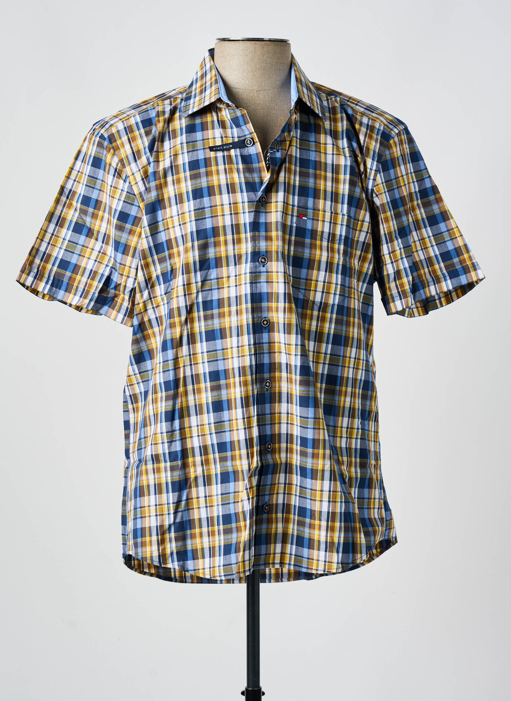 Profitez d’un vrai bon plan avec cette chemise manches courtes signée JUPITER, idéale pour apporter une note dynamique et décontractée à votre garde-robe sans vous ruiner. Son motif à carreaux dans des tons bleu, jaune et blanc offre une allure estivale et tendance, tandis que sa coupe classique avec col et patte de boutonnage assure un confort optimal au quotidien. Voilà une pièce polyvalente et stylée qui vous permet de rester élégant, à petit prix.