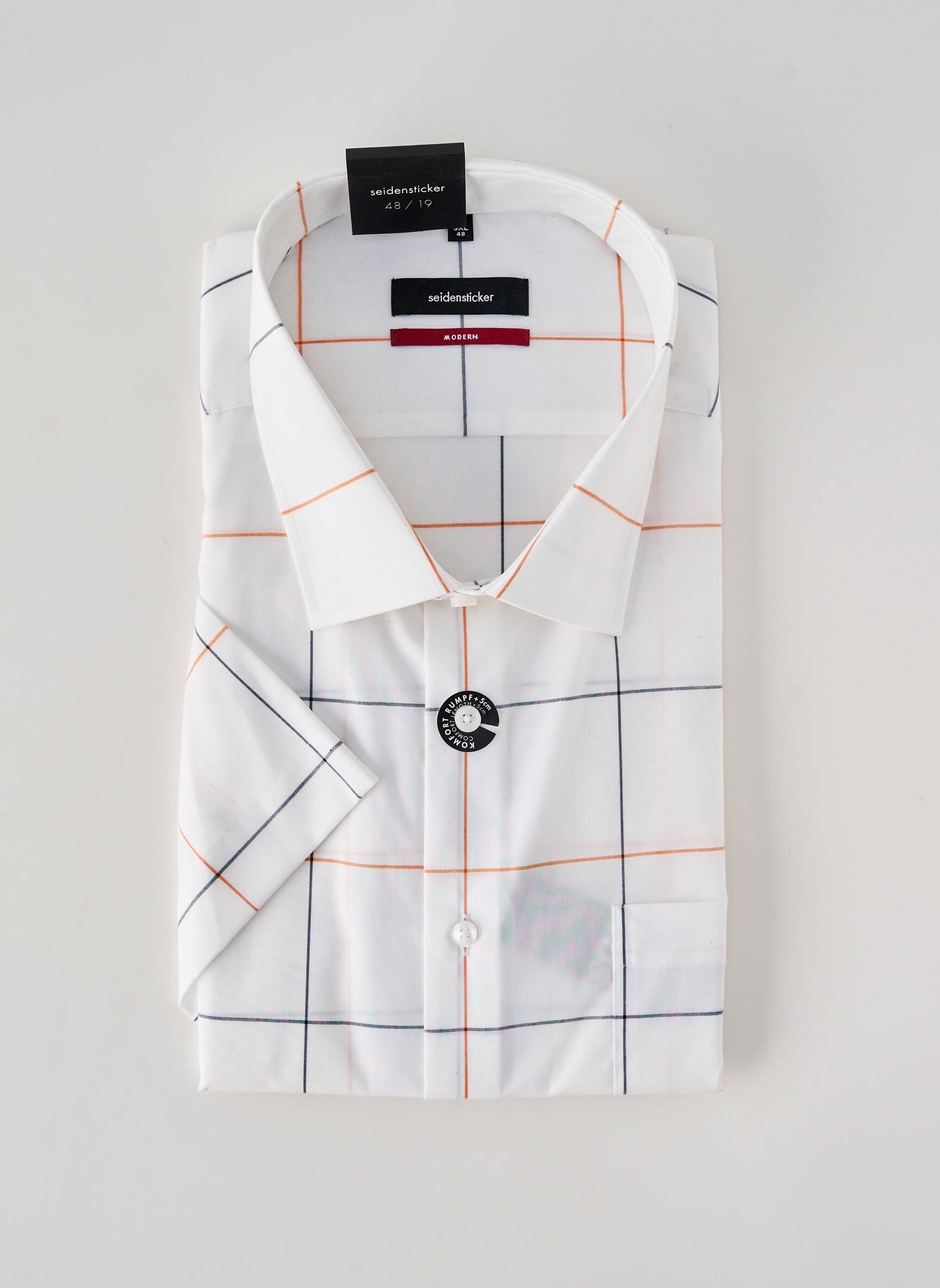 Profitez d'une opportunité exceptionnelle avec cette chemise manches courtes pour homme de la marque SEIDEN STICKER, parfaite pour apporter une touche élégante à votre dressing sans vous ruiner. Son motif à carreaux modernes noirs et orangés sur fond blanc illumine votre silhouette tout en s’adaptant à toutes les occasions, du bureau à vos sorties détente, avec cette pièce incontournable à prix malin.