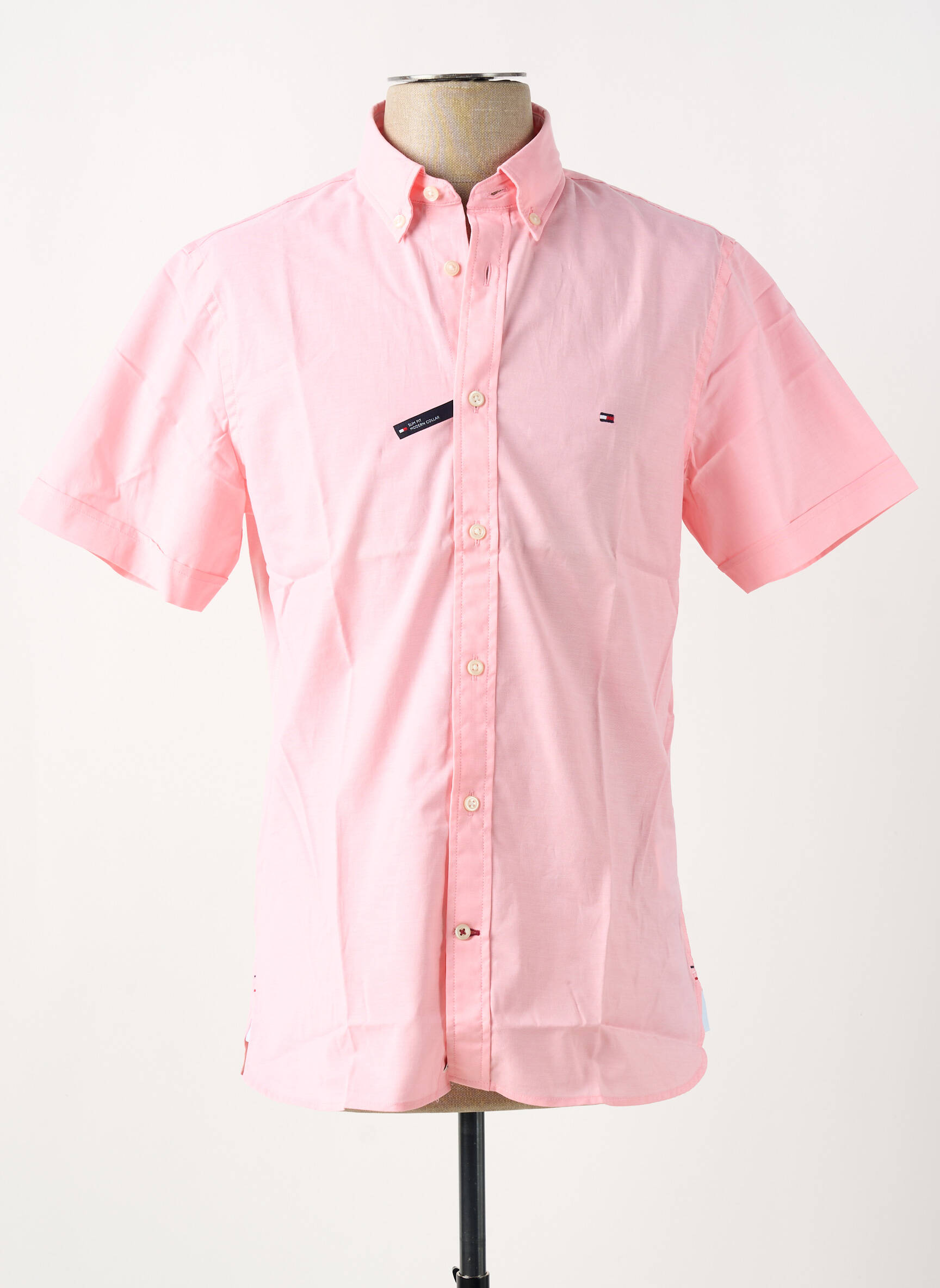 Profitez d’une opportunité à petit prix avec cette chemise manches courtes TOMMY HILFIGER pour homme, idéale pour apporter une touche de fraîcheur et d’élégance à votre dressing. Avec sa couleur rose pâle tendance et ses finitions soignées, elle se distingue par son col boutonné et son logo discret brodé sur la poitrine, un choix parfait pour un style chic et décontracté sans se ruiner.
