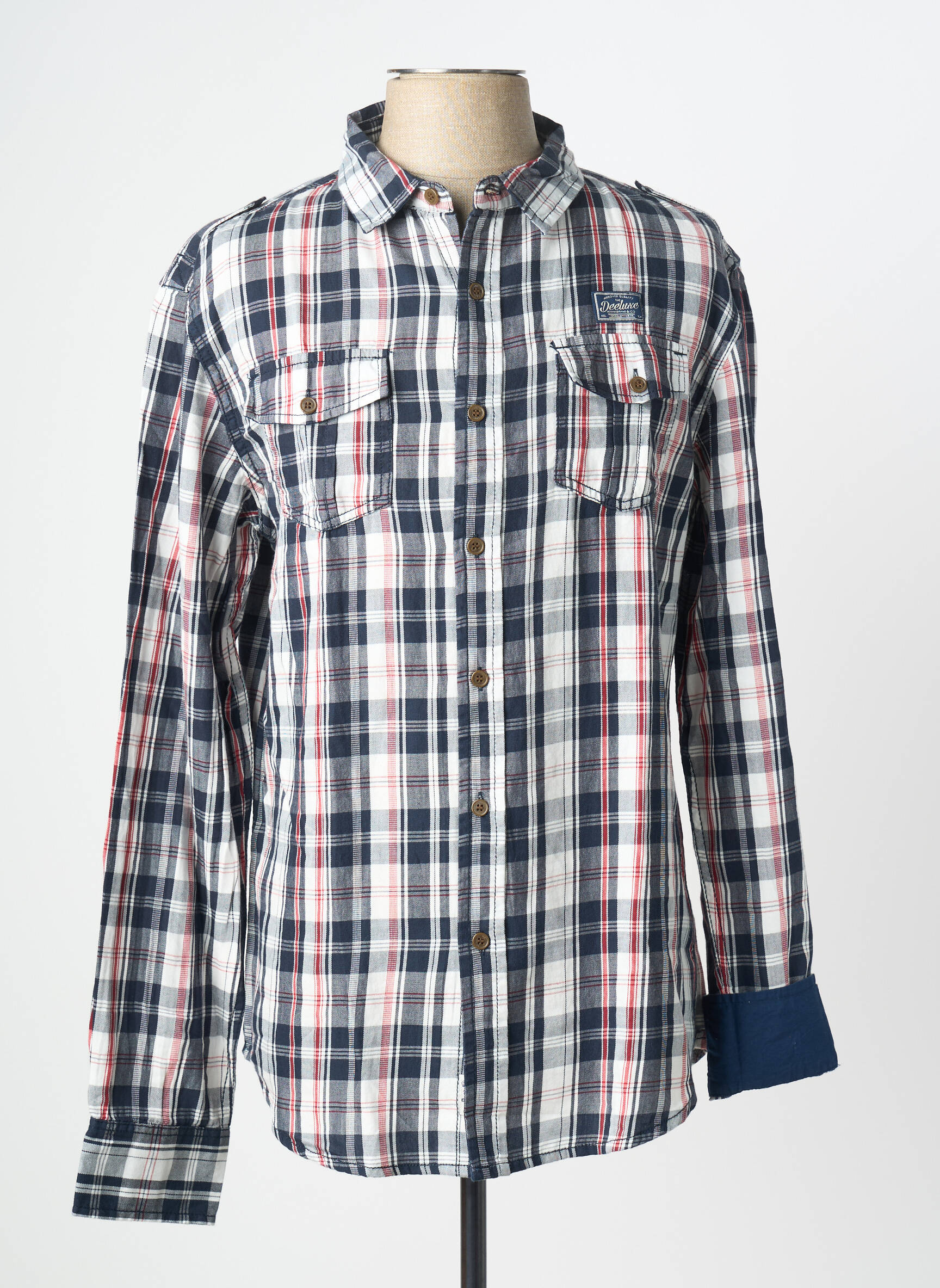Profitez d'une vraie bonne affaire avec cette chemise à manches longues DEELUXE pour homme, parfaite pour donner du style à votre dressing sans vous ruiner. Son motif à carreaux dans les tons bleu, blanc et rouge apporte une touche moderne et décontractée, idéale à porter seule ou ouverte sur un t-shirt pour un look tendance. Les deux poches à rabat sur la poitrine ajoutent une note pratique et authentique, tandis que ses boutons apparents lui confèrent un esprit casual facile à associer. C’est le choix malin pour ceux qui recherchent la qualité à prix mini.
