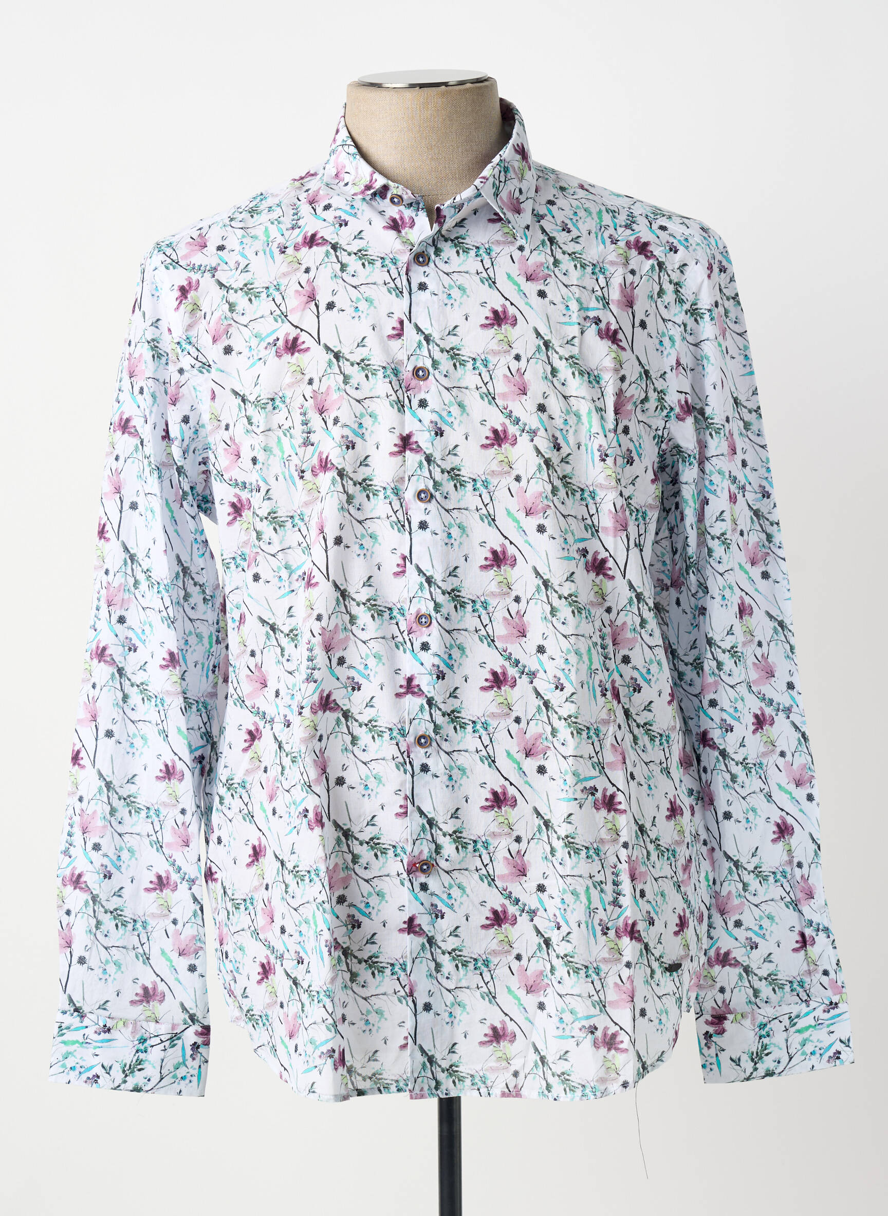 Profitez d’une véritable affaire mode avec cette chemise à manches longues de la marque DELAHAYE, idéale pour apporter une touche de fraîcheur et d’originalité à votre dressing à petit prix. Son motif floral aux nuances de violet et de vert sur fond blanc met en valeur une silhouette chic et tendance, parfaite pour sortir du lot sans vous ruiner. Laissez-vous séduire par ce bon plan mode, qui combine style et économie, et marquez votre différence avec élégance.