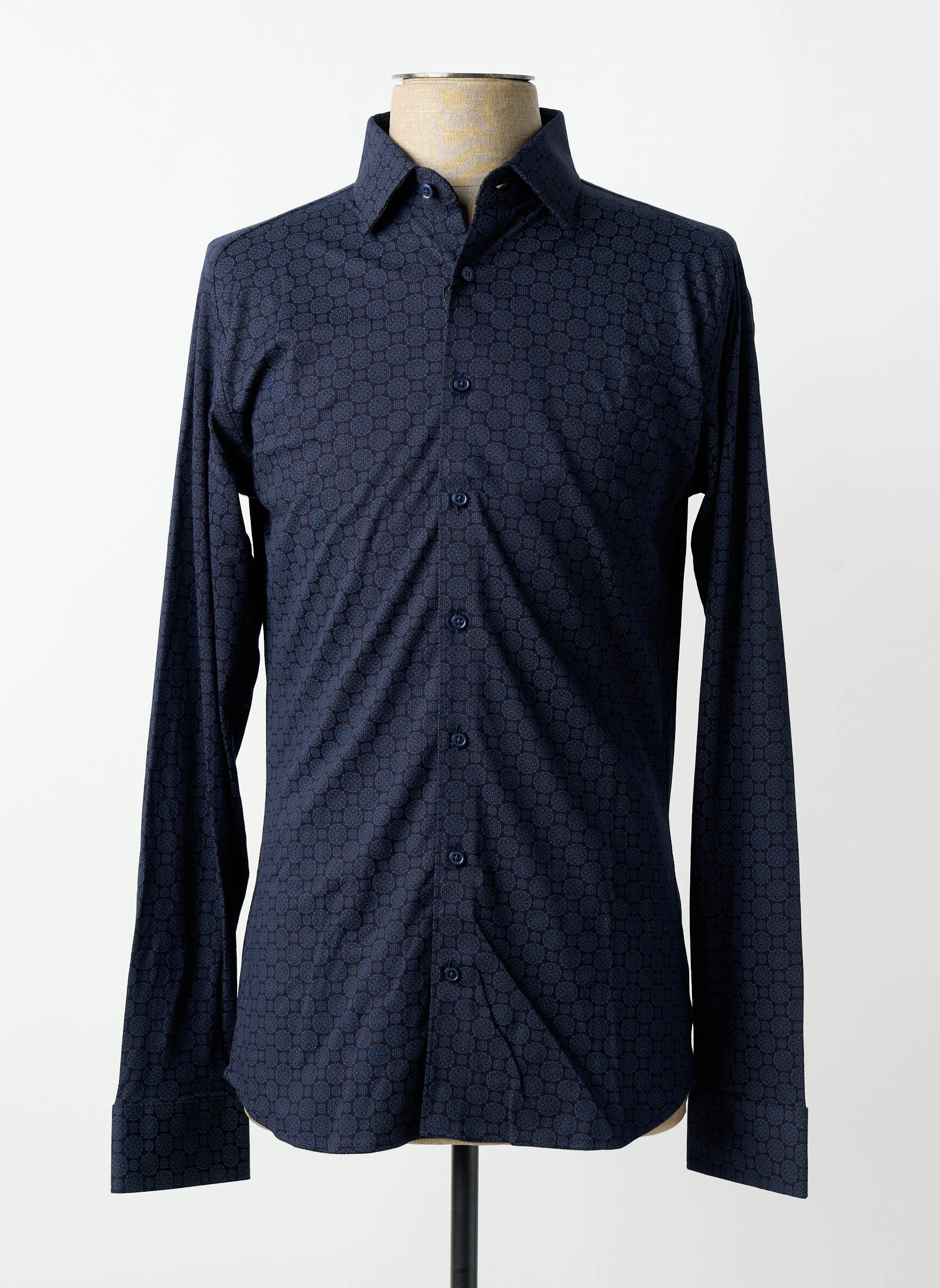 Profitez d’un véritable bon plan avec cette chemise manches longues pour homme signée DESOTO, qui allie élégance moderne et discrétion grâce à son motif géométrique raffiné sur fond bleu marine. Sa coupe ajustée met en valeur la silhouette tout en offrant un maximum de confort pour la vie de tous les jours ou les occasions plus habillées, un choix malin qui vous permet de renouveler votre garde-robe à petit prix sans compromis sur le style.