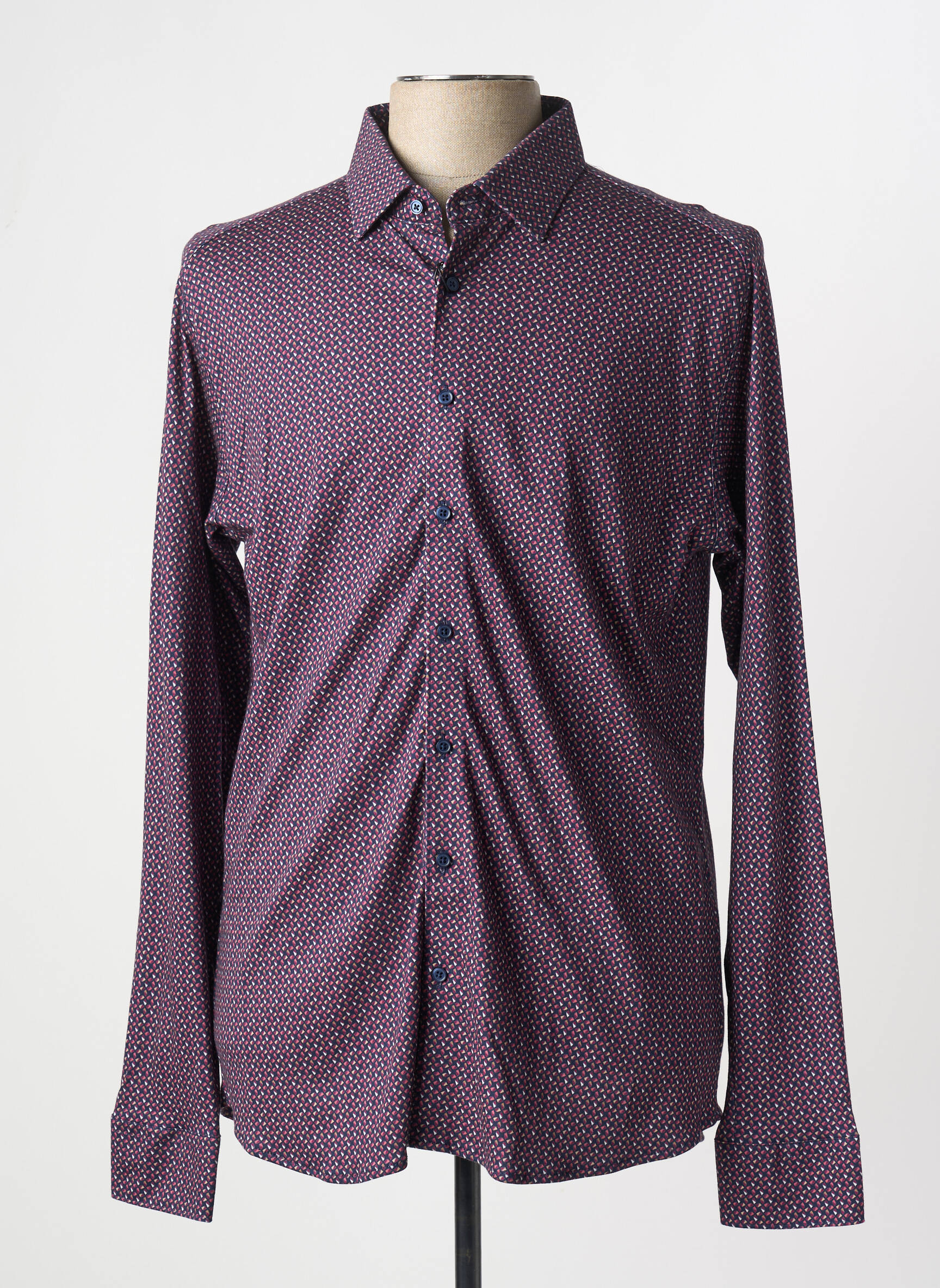 Profitez d’un bon plan et ajoutez une touche de style à votre vestiaire avec cette chemise manches longues DESOTO pour homme, affichant un motif graphique raffiné dans des tons bordeaux et bleu discret. Sa coupe élégante met en valeur la silhouette tout en assurant un confort optimal au quotidien, idéale pour moderniser vos tenues de bureau ou vos sorties en soirée, le tout à prix doux grâce à notre sélection déstockage.