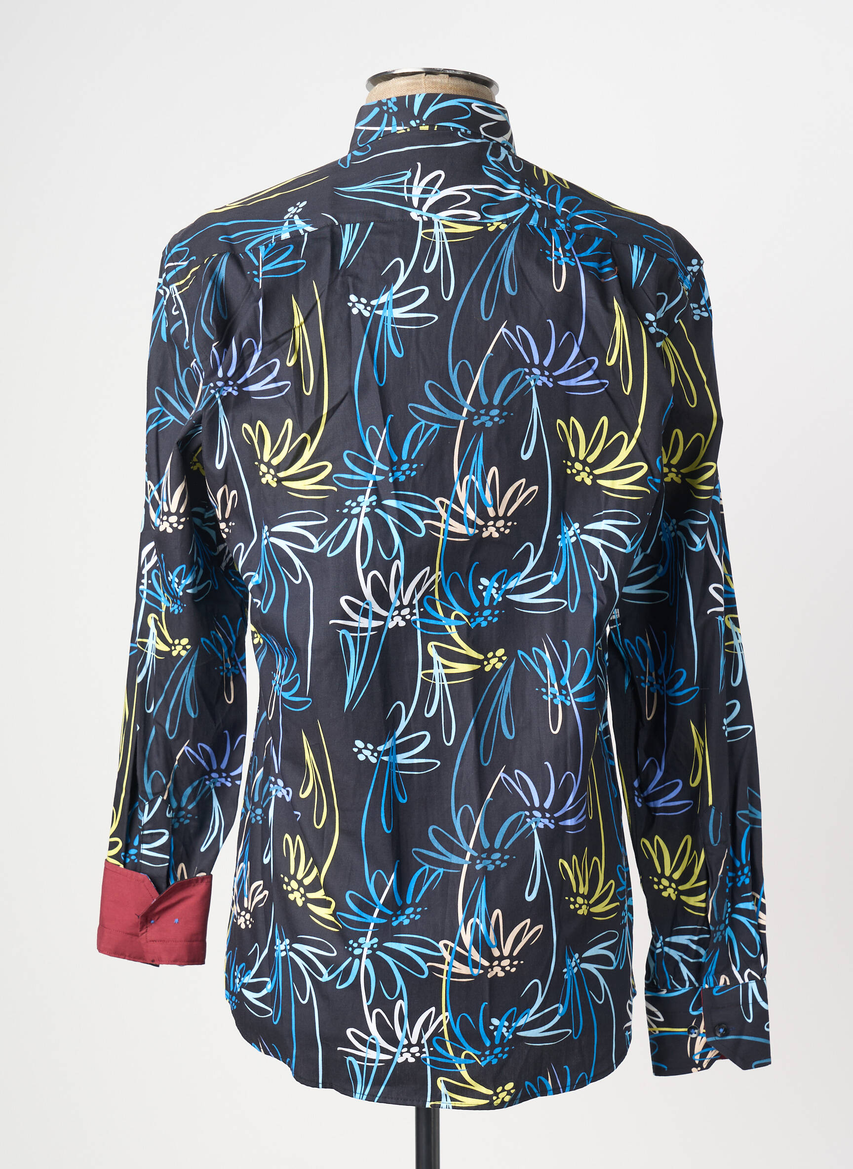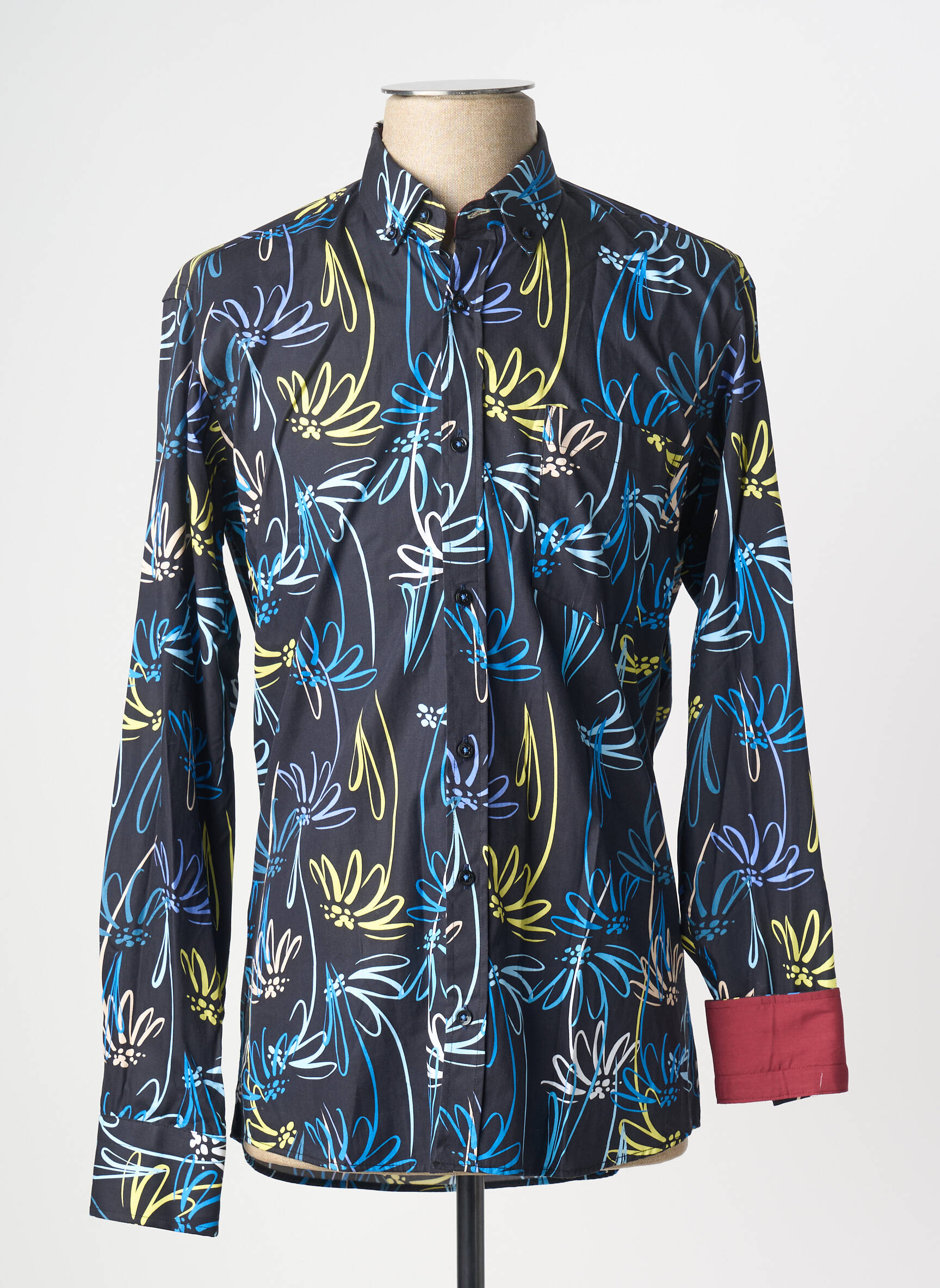 Profitez d’un bon plan tendance avec cette chemise manches longues EMYLE pour homme, idéale pour ajouter une touche de style à petit prix à votre dressing. Son motif floral graphique multicolore sur fond noir attire le regard et donne de l’originalité à vos tenues, tandis que le revers contrasté bordeaux des poignets signe une finition raffinée. Cette chemise allie parfaitement élégance et modernité, un indispensable à prix réduit pour ceux qui aiment se démarquer sans se ruiner.