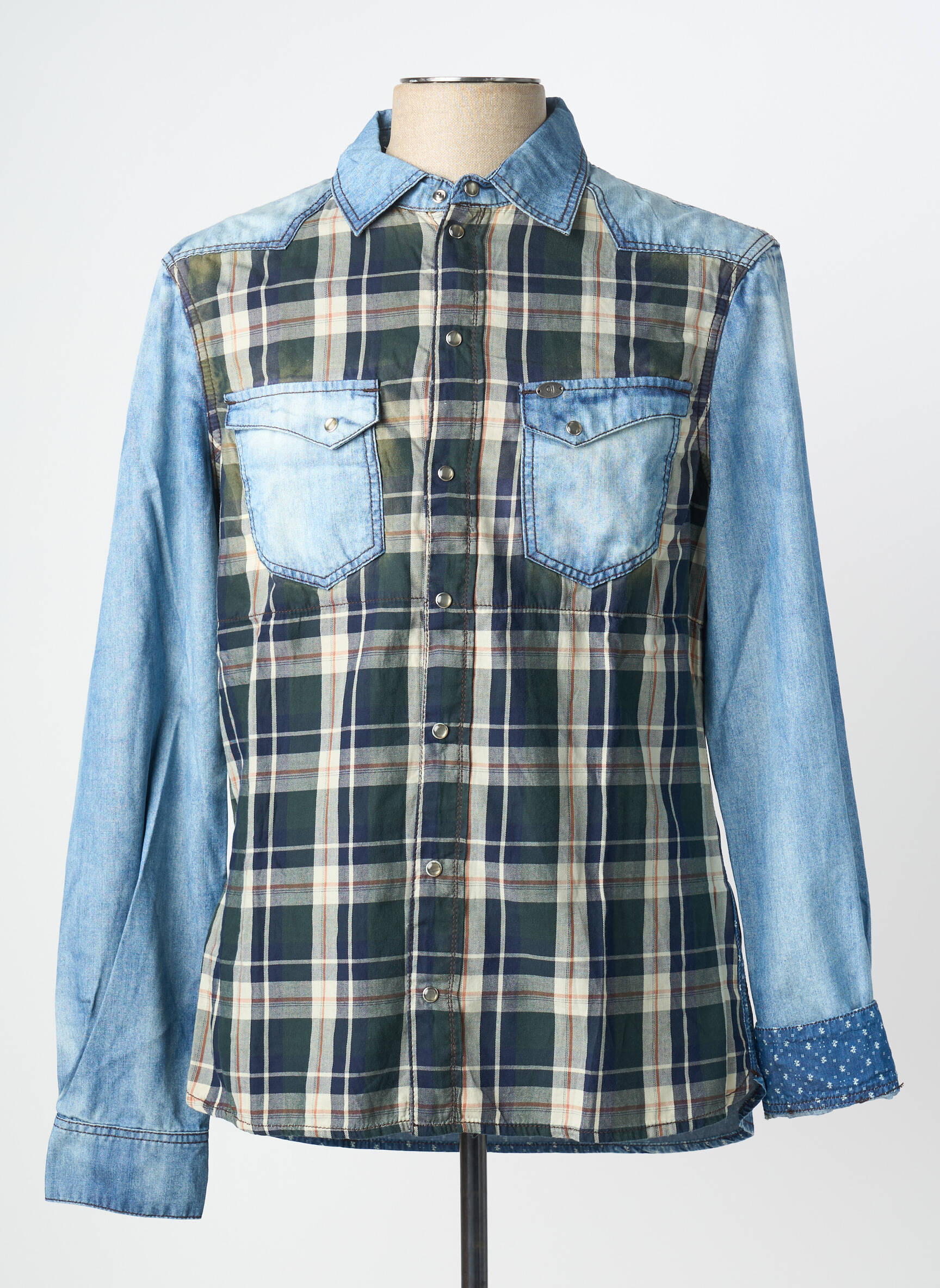 Faites des économies sans compromis sur le style avec cette chemise manches longues signée GAUDI, affichant un design original mêlant harmonieusement un tissu à carreaux sur le devant et des empiècements en jean sur les manches et les poches poitrine, idéale pour apporter une touche tendance à votre dressing. Profitez de ce bon plan et offrez-vous une pièce à la fois moderne et décontractée à prix réduit.