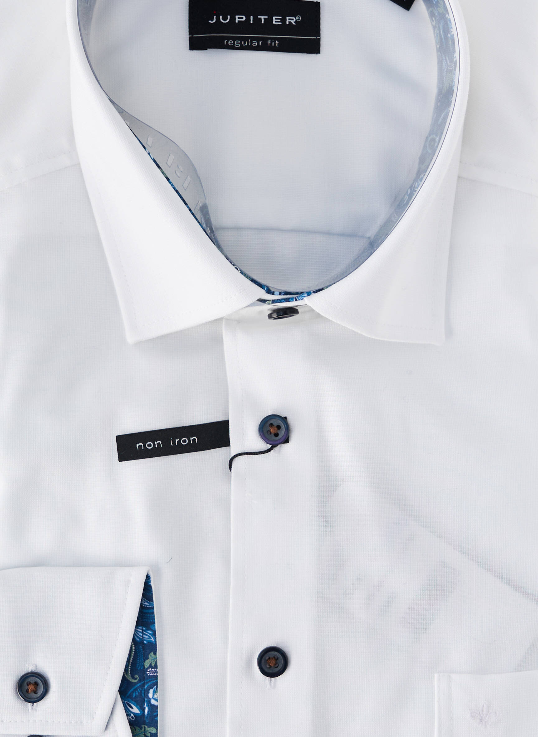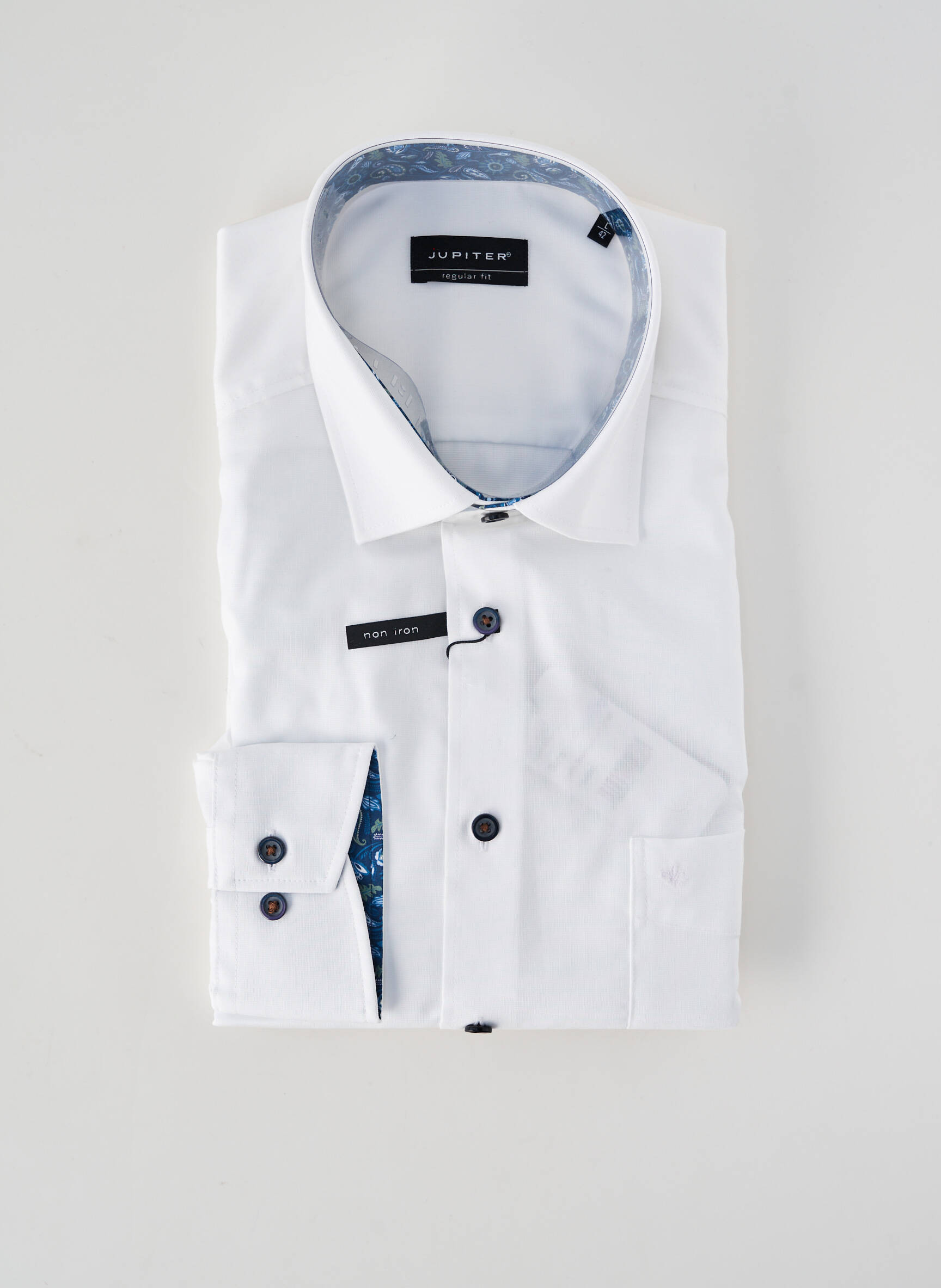 Profitez d’une opportunité à prix mini avec cette chemise manches longues JUPITER pour homme, idéale pour allier élégance et économies au quotidien. Sa coupe soignée et son coloris blanc intemporel sont relevés par des boutons contrastants et de délicats détails imprimés à l'intérieur du col et des poignets, apportant une touche de raffinement discret. Cette chemise vous assure un look chic aussi bien au bureau que pour vos sorties, sans compromettre votre budget.