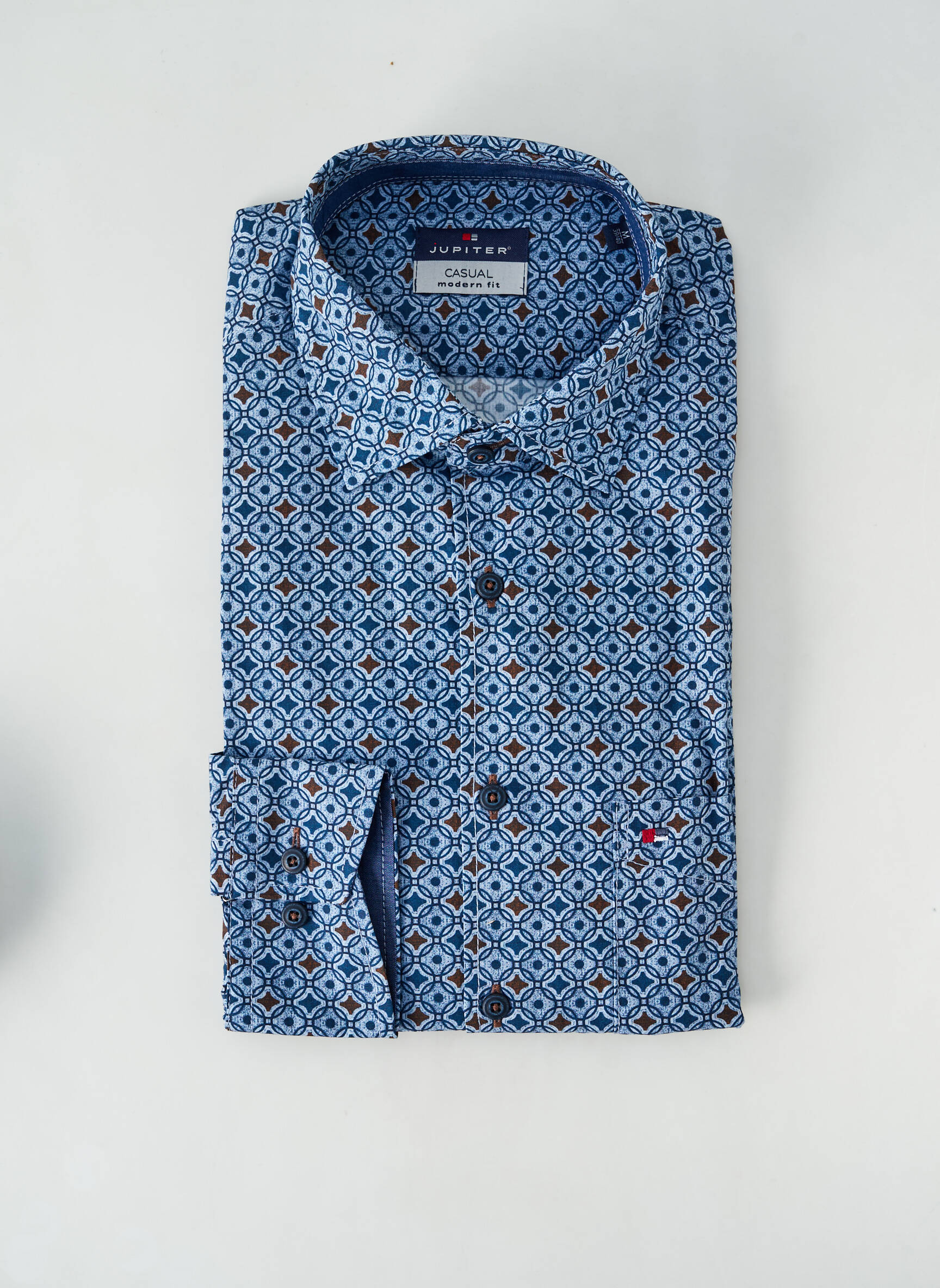 Profitez d’un excellent rapport qualité-prix avec cette chemise manches longues Jupiter pour homme, un incontournable pour ceux qui recherchent élégance et économies. Son imprimé graphique bleu apportera une touche de modernité à votre tenue, tandis que la coupe soignée assure un style irréprochable aussi bien au travail qu’en sortie. C’est la pièce idéale pour renouveler votre vestiaire à petit prix sans compromis sur le style.