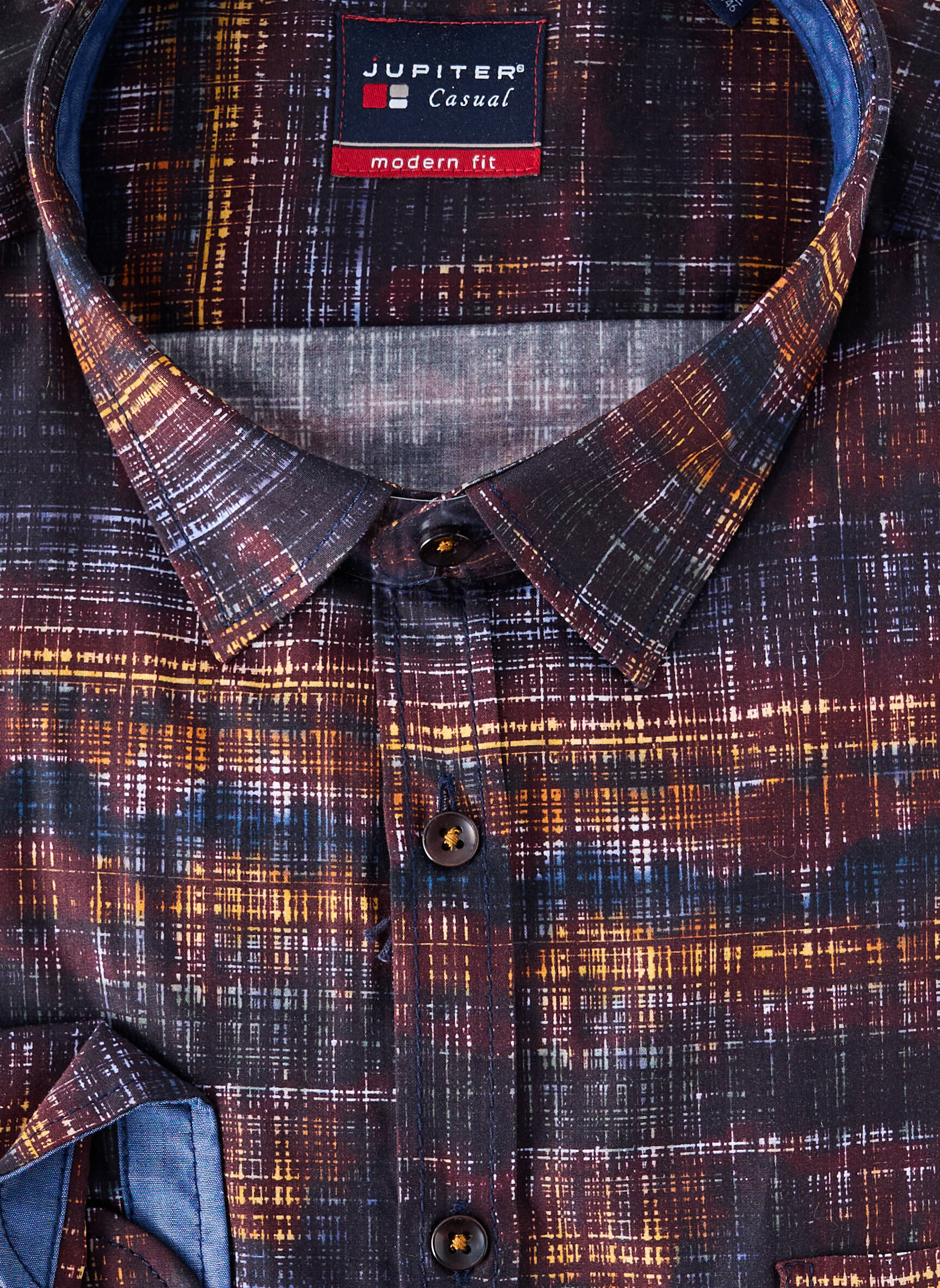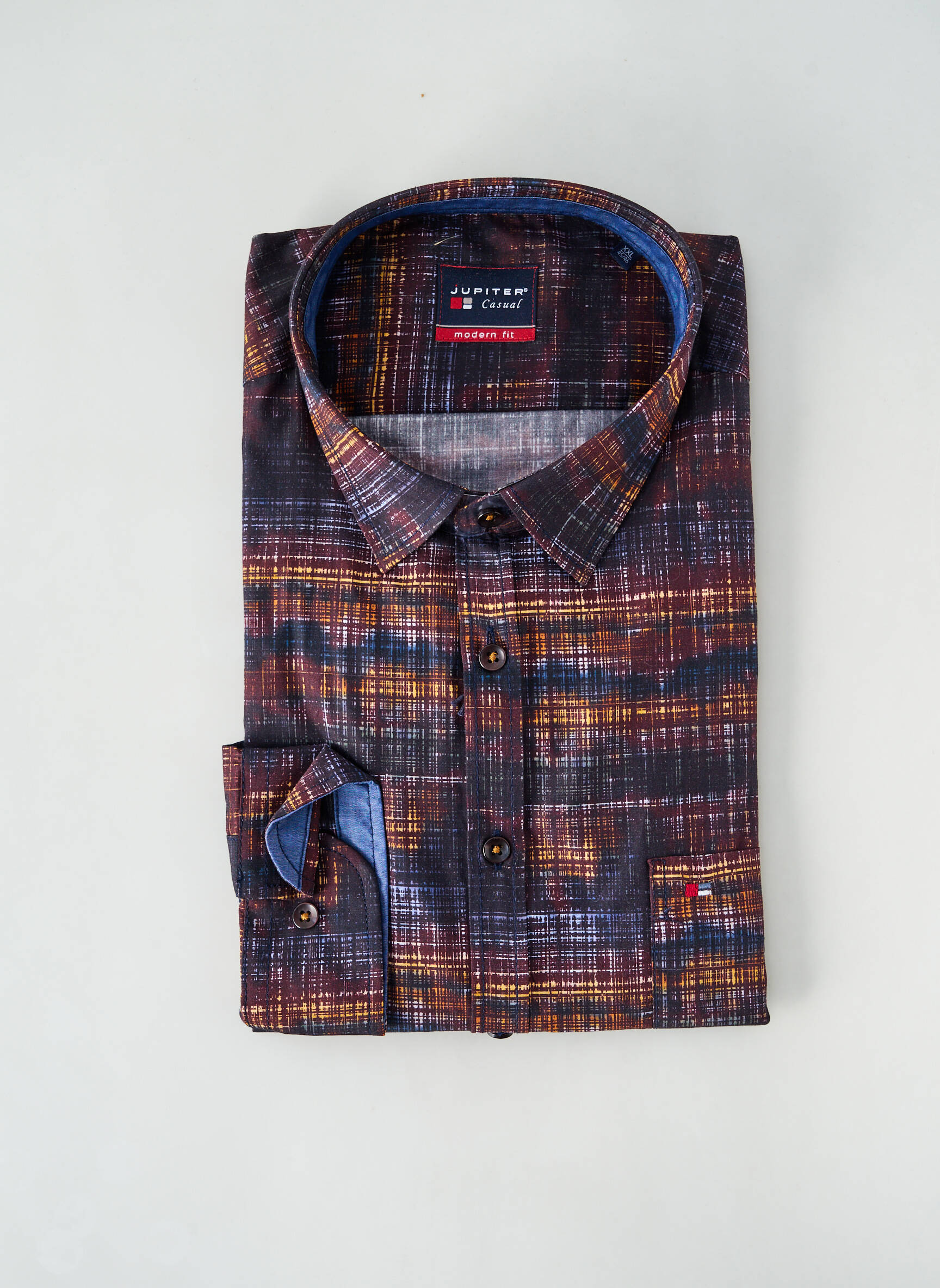 Profitez d'un vrai bon plan avec cette chemise manches longues pour homme signée JUPITER, un modèle moderne à l'imprimé graphique qui apporte une touche d'originalité tout en restant élégant. Sa coupe soignée et la finition contrastée à l'intérieur du col et des poignets en font un choix idéal pour ceux qui souhaitent se démarquer sans se ruiner. Adoptez le style à prix mini avec cette pièce tendance à prix déstockage, parfaite pour renouveler votre dressing sans compromis sur la qualité.