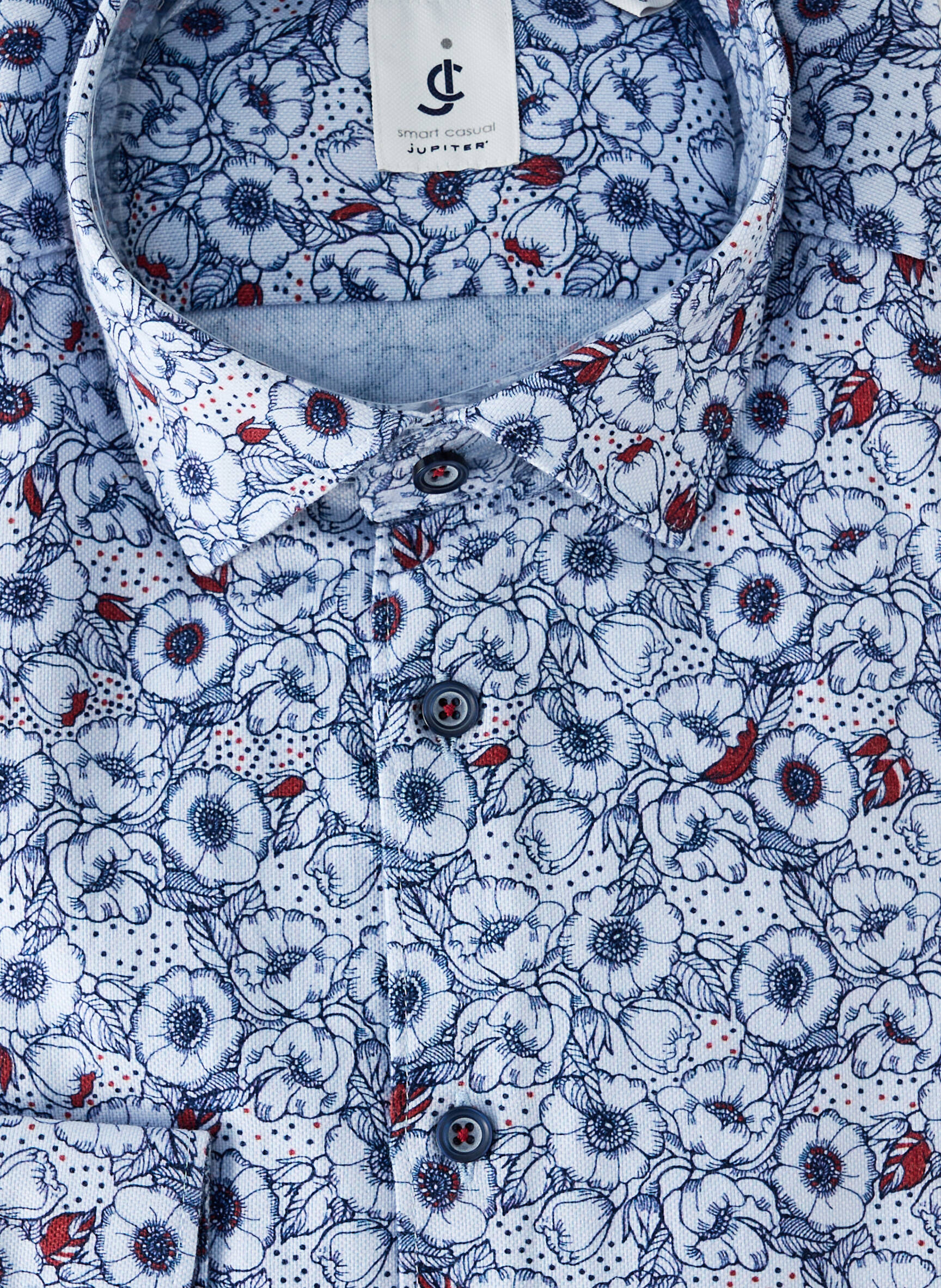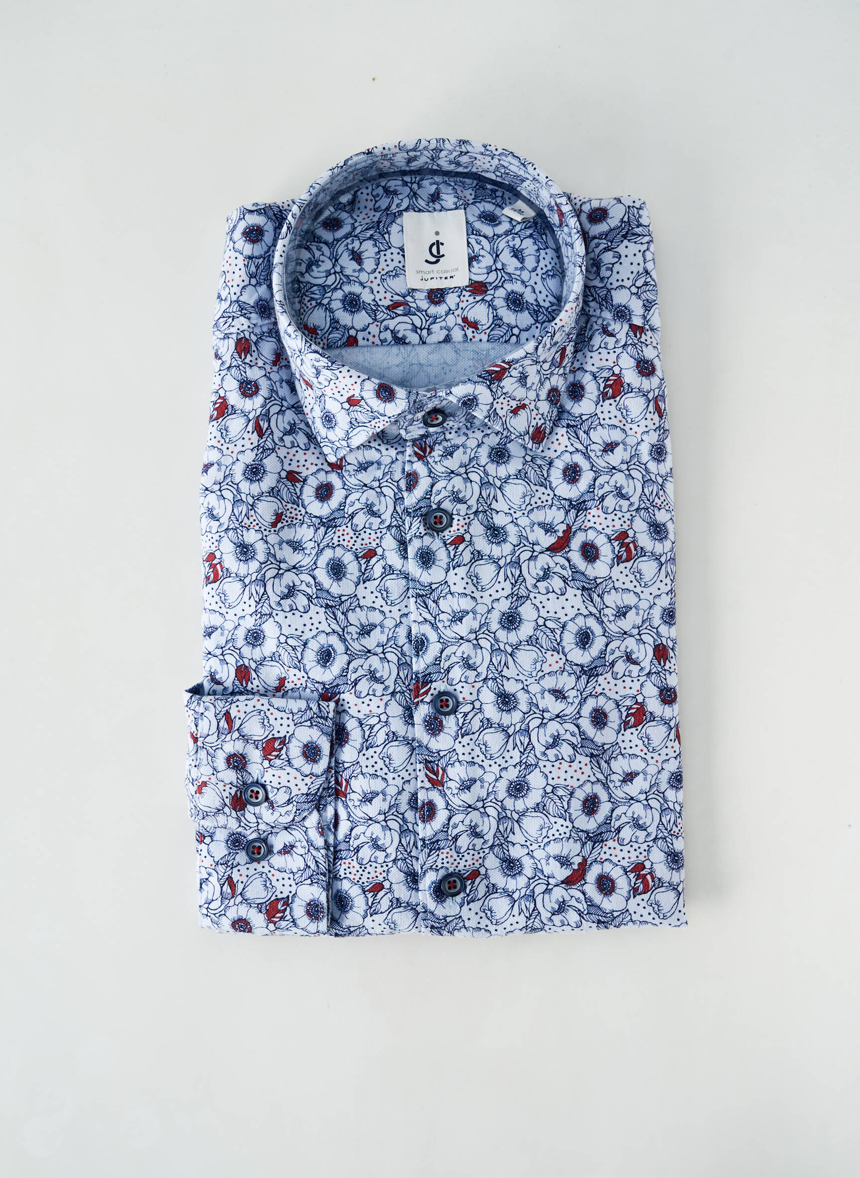 Profitez d’un vrai bon plan avec cette chemise manches longues pour homme signée JUPITER, au motif floral bleu et blanc relevé par des touches de rouge, parfaite pour ajouter la touche de fraîcheur et d’élégance à votre dressing sans vous ruiner. Son design moderne, allié à une coupe confortable, fait de cette chemise un choix idéal aussi bien pour le bureau que pour les sorties, tout en faisant de réelles économies grâce à ce modèle tendance proposé à prix déstockage.