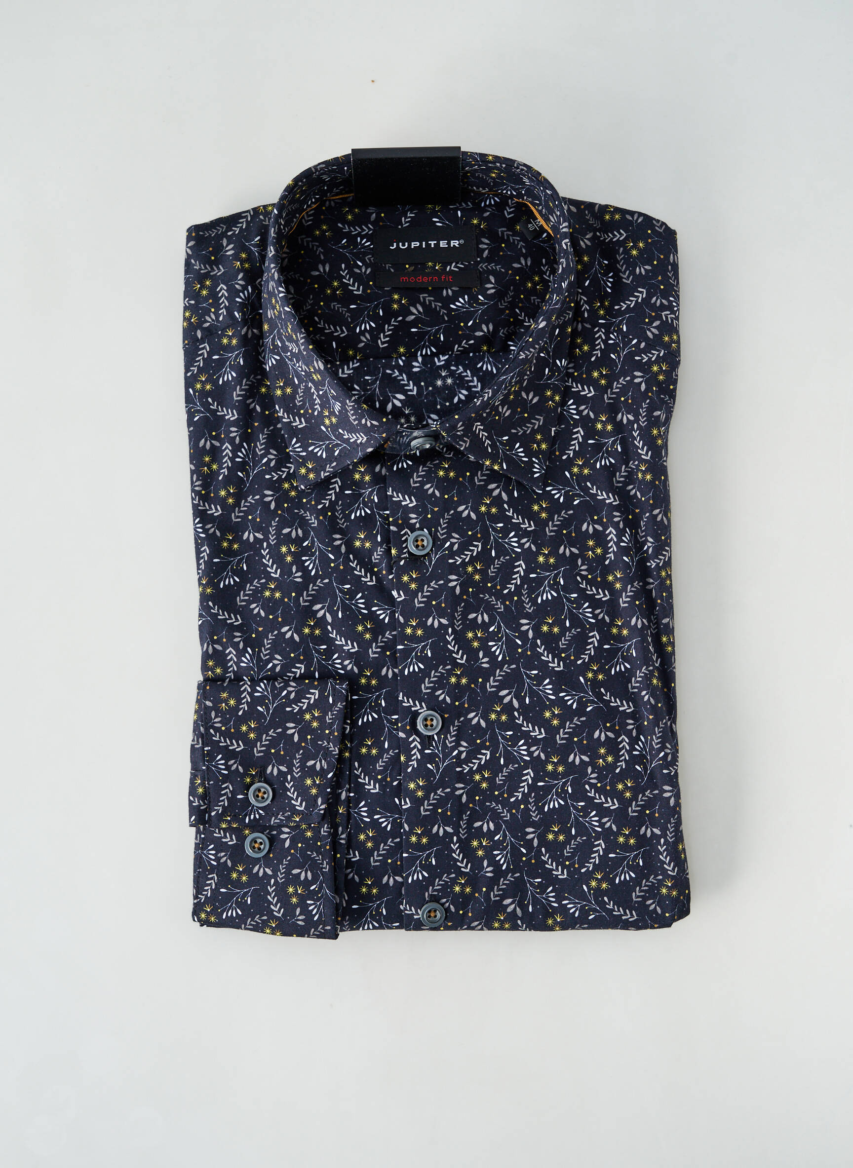 Profitez d’une affaire à ne pas manquer avec cette chemise manches longues JUPITER pour homme, au motif floral raffiné sur fond bleu marine, idéale pour donner une touche d’originalité à vos tenues sans vous ruiner. Les détails soignés tels que ses boutons élégants et sa coupe intemporelle en font un choix parfait pour allier style et économie.