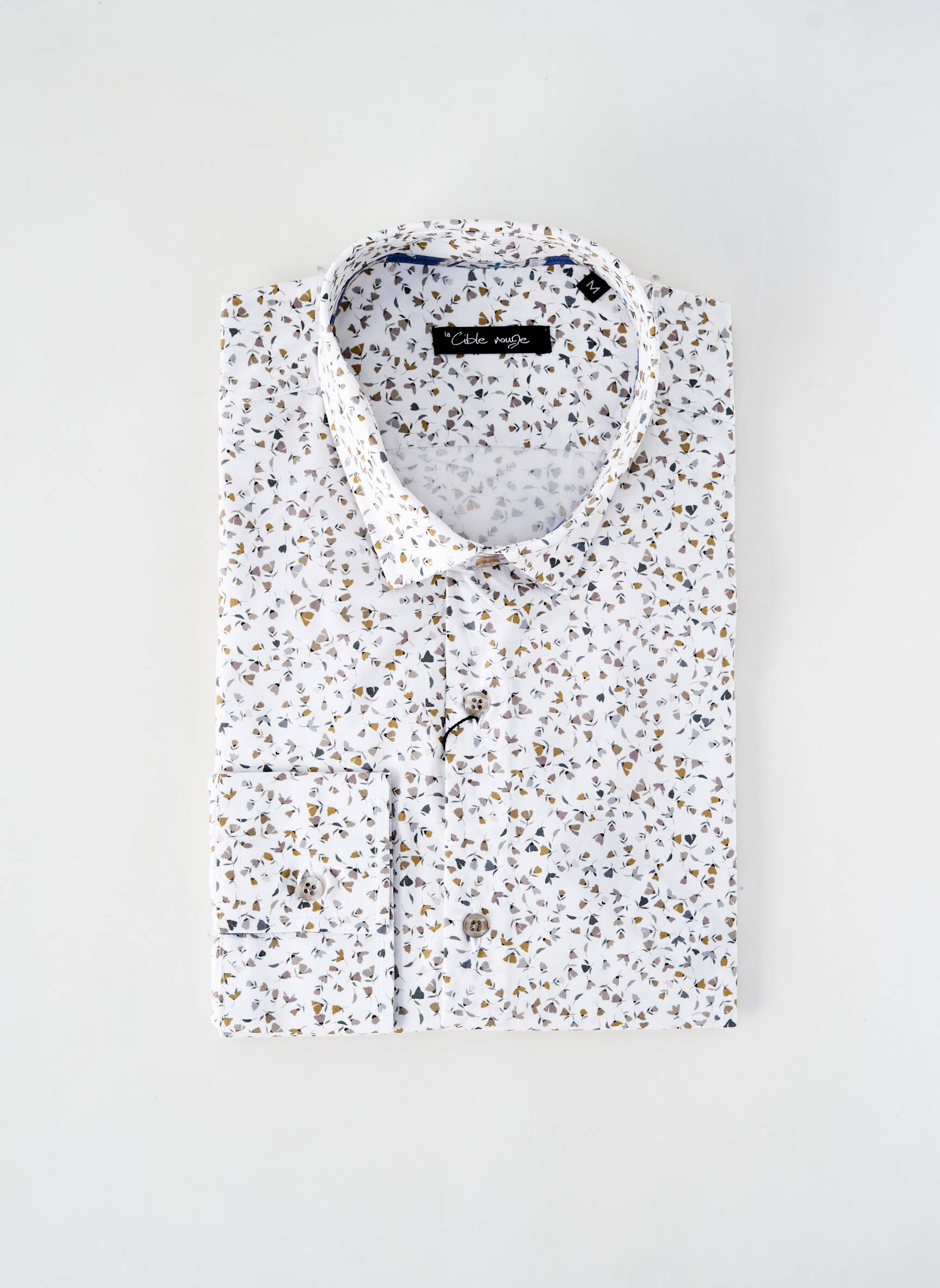 Profitez d’un bon plan mode avec cette chemise manches longues LA CIBLE ROUGE pour homme, idéale pour renouveler votre vestiaire à petit prix. Son imprimé raffiné mêle subtilement des motifs modernes sur un fond blanc lumineux, pour un look à la fois original et facile à porter au quotidien comme en soirée. Cette pièce élégante saura attirer les regards et vous permettre de vous distinguer sans vous ruiner.