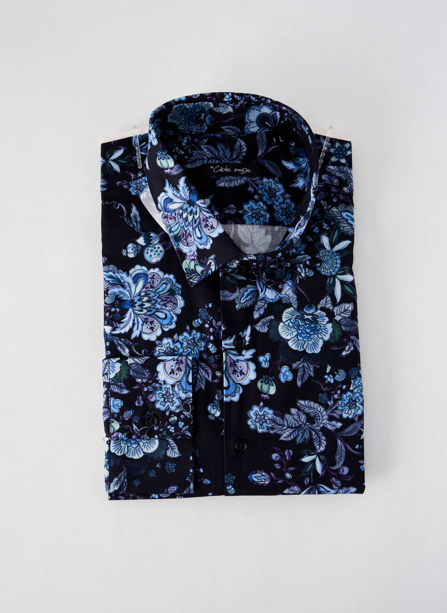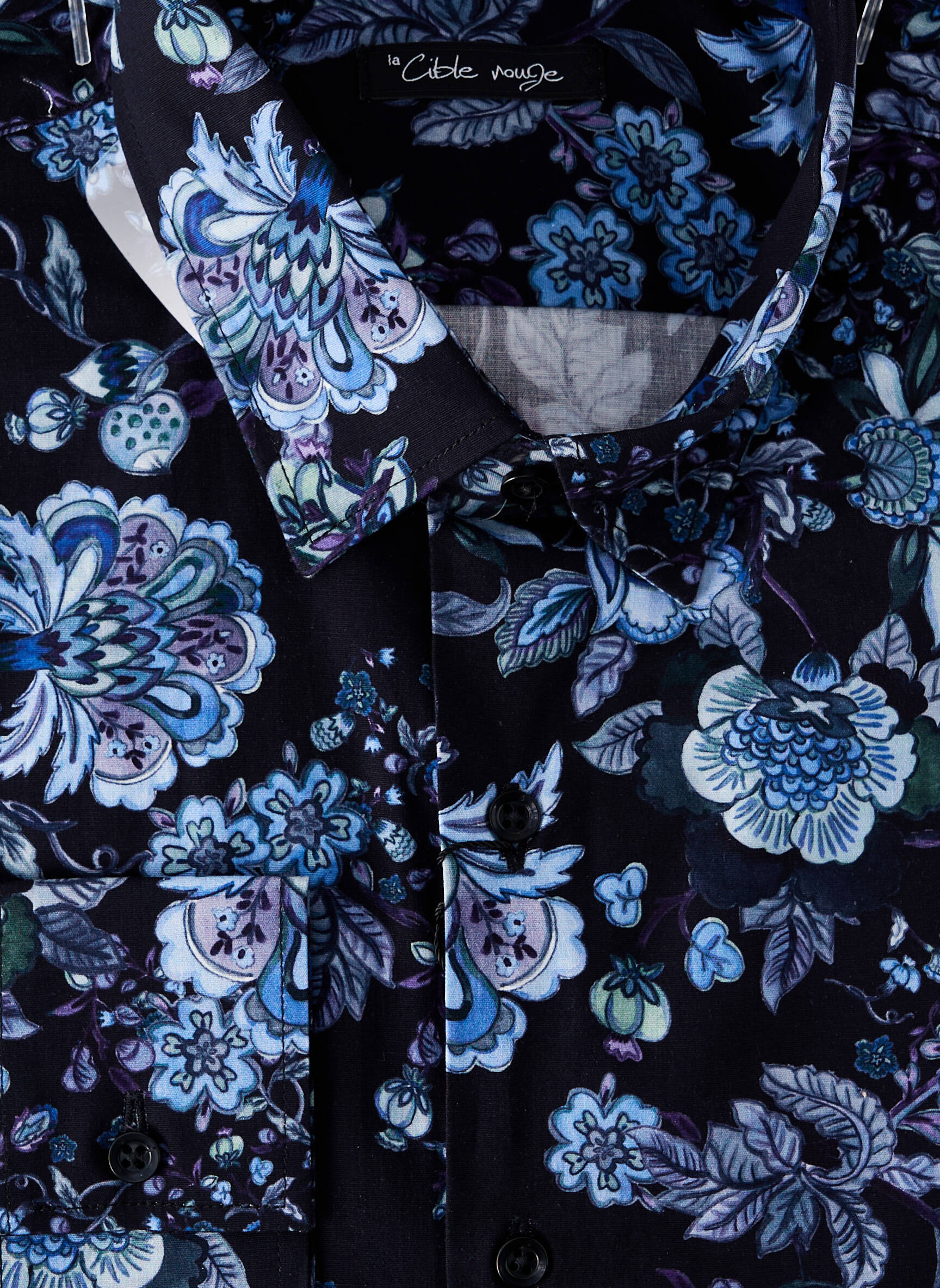 Profitez d’un vrai bon plan avec cette chemise à manches longues LA CIBLE ROUGE pour homme, qui affiche un superbe motif floral bleu sur fond noir pour un style élégant et original sans vous ruiner. Son imprimé travaillé apporte une touche de modernité à vos tenues, idéale à porter aussi bien au bureau qu’en soirée, tout en bénéficiant d’un prix mini grâce à notre déstockage multi-marques.