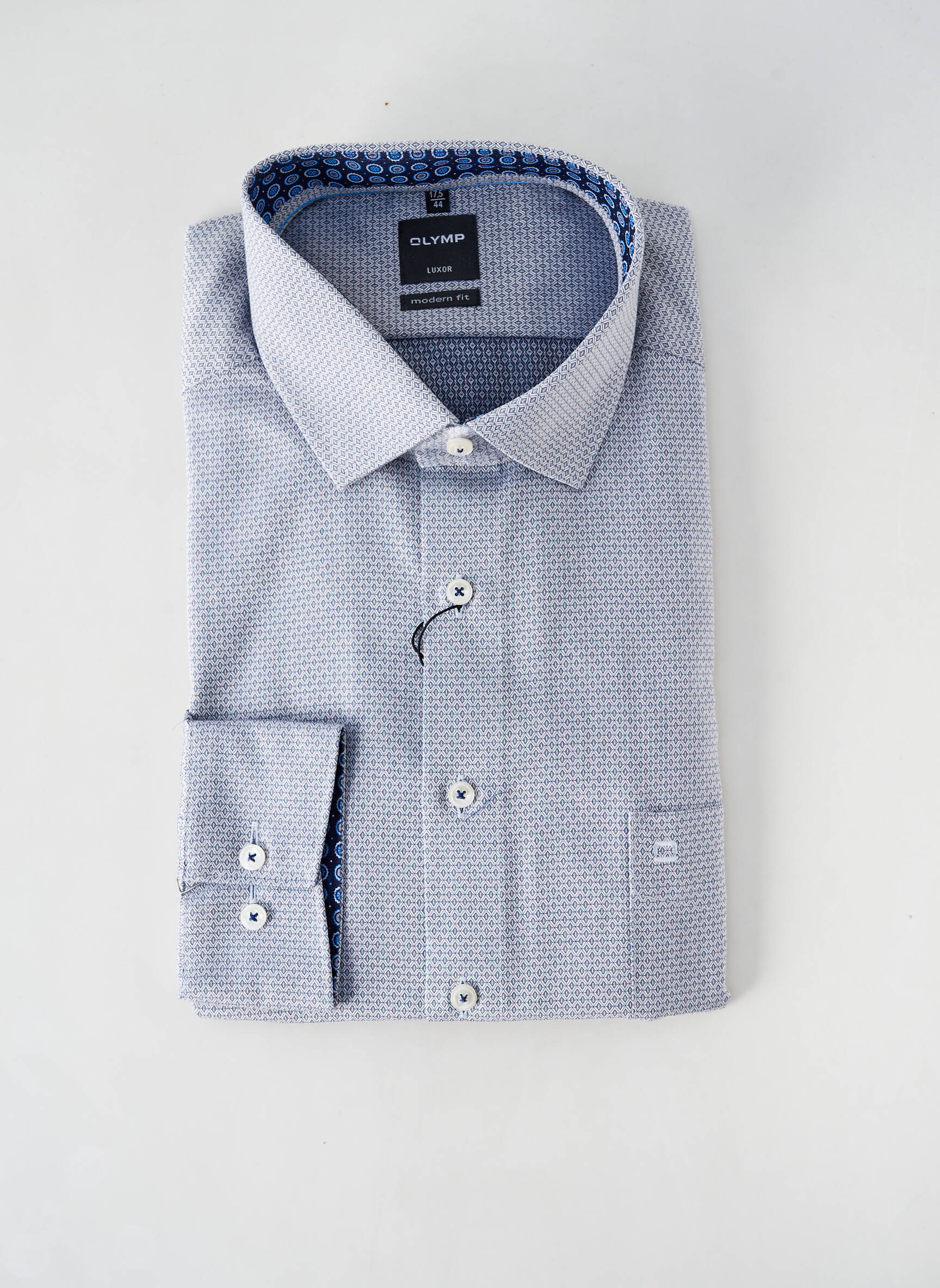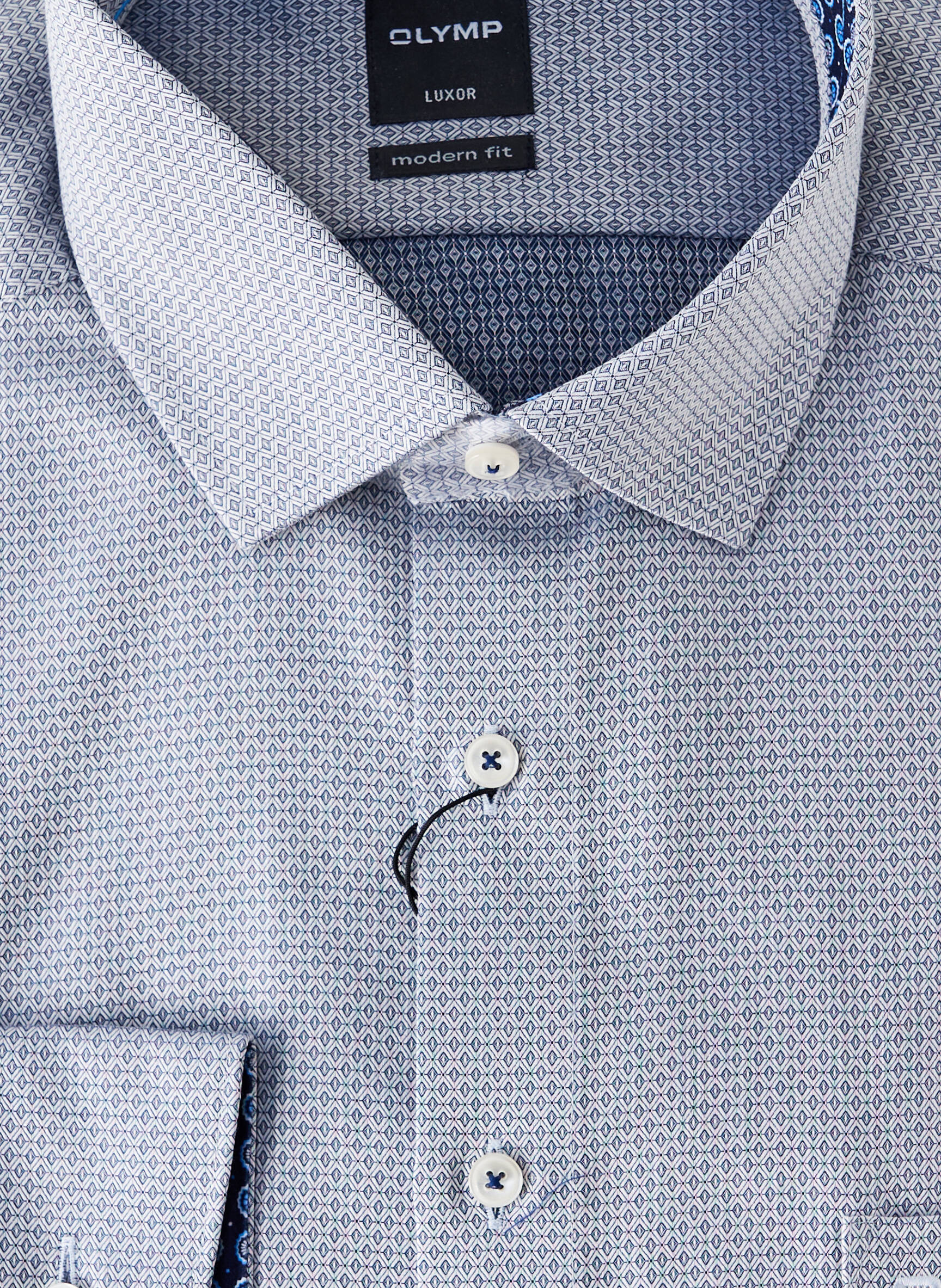 Bénéficiez d’une chemise manches longues OLYMP à prix mini et profitez du style chic et moderne sans vous ruiner. Ce modèle présente un élégant motif discret sur fond clair, rehaussé de boutons contrastés et de finitions soignées à l’intérieur du col, parfait pour apporter une touche raffinée à vos tenues professionnelles ou décontractées tout en faisant une belle économie.