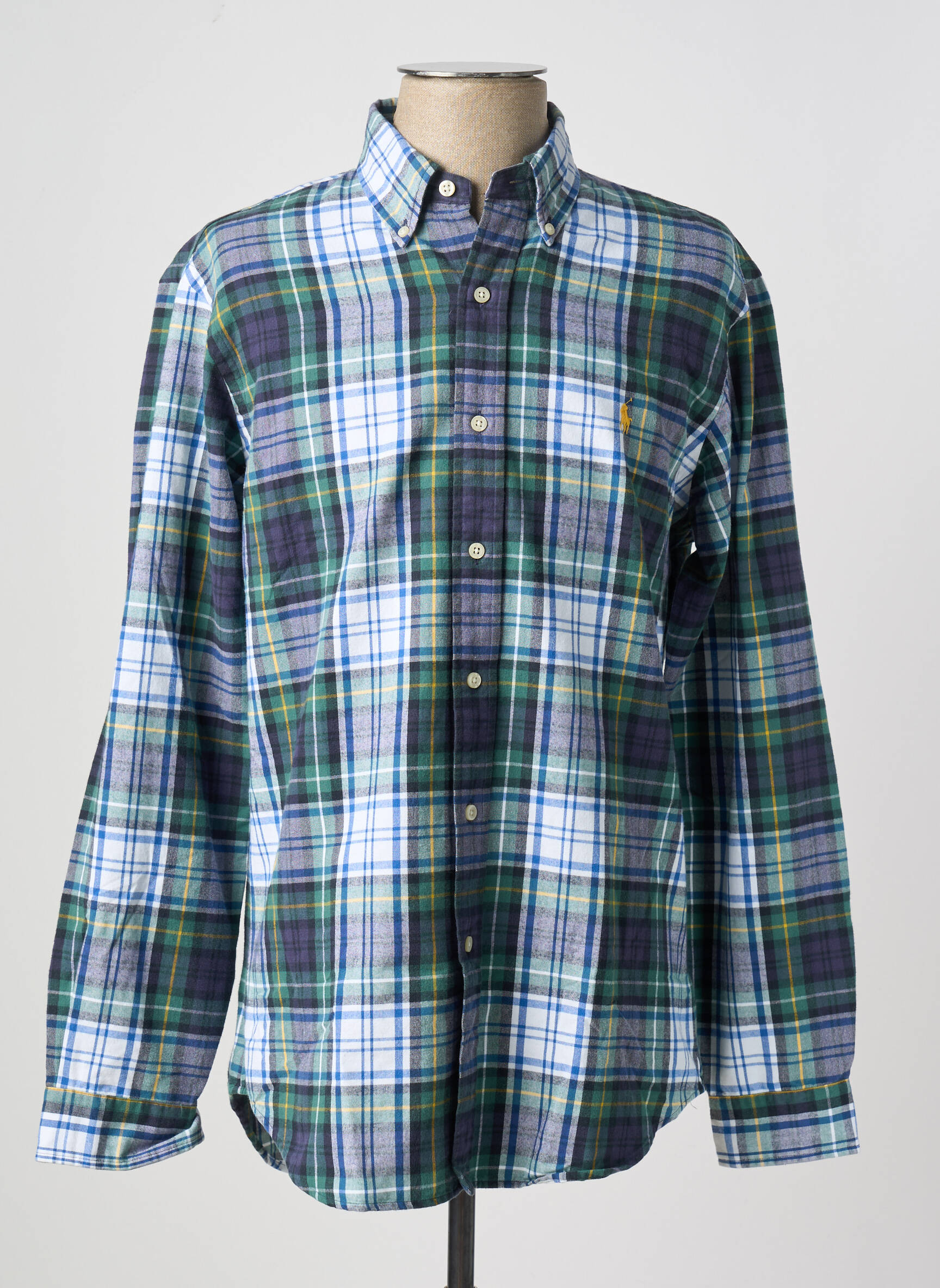 Profitez d’un véritable bon plan avec cette chemise manches longues Ralph Lauren pour homme, affichant un motif à carreaux élégant dans des tons verts, bleus et blancs et un petit logo discret brodé sur la poitrine, idéale pour un look raffiné à prix imbattable.