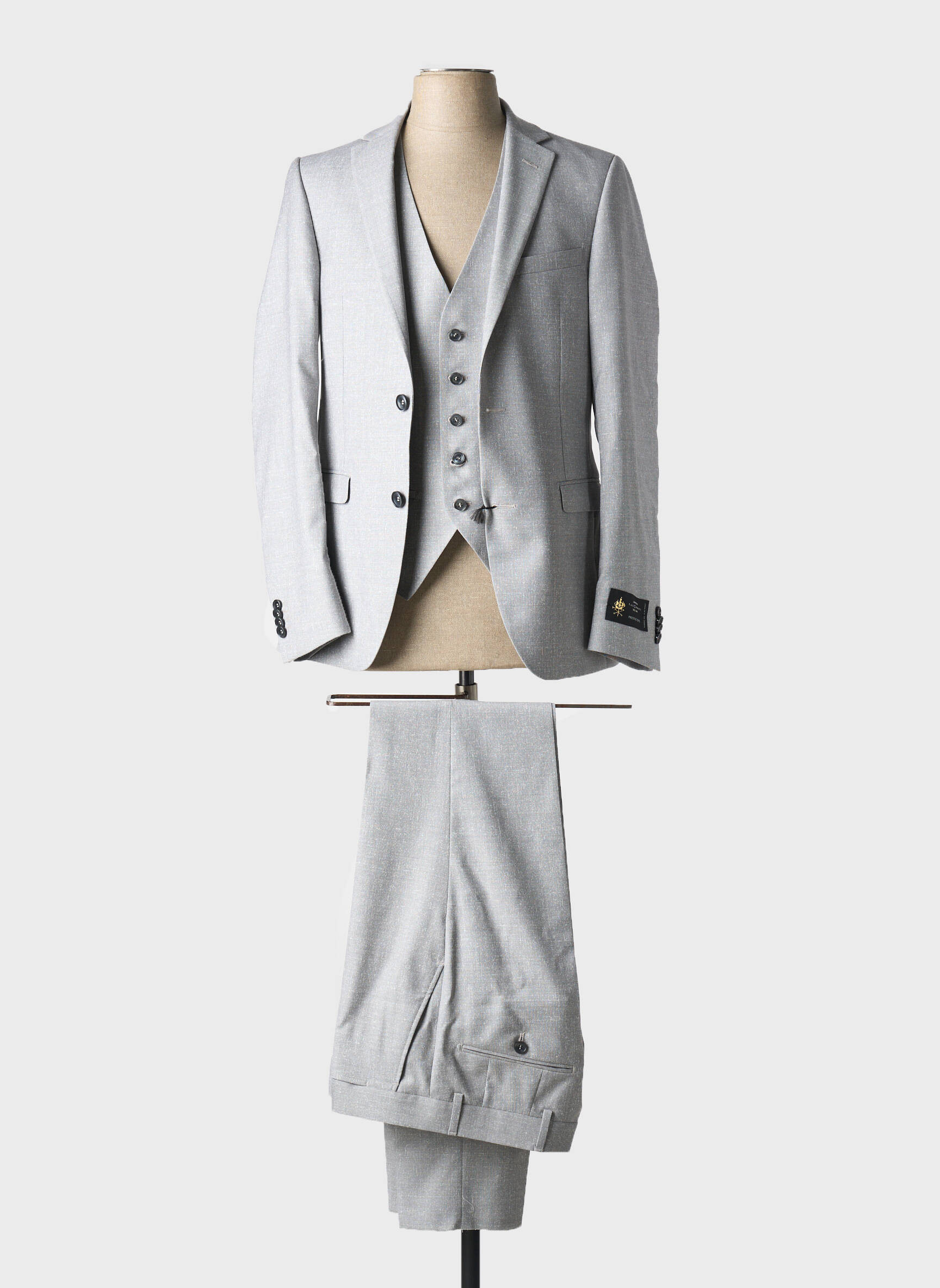 Voici l’occasion idéale de s’offrir un costume de cérémonie LANIFICIO à prix malin, un choix parfait pour sublimer votre allure sans ruiner votre budget. Ce modèle élégant se distingue par sa coupe soignée et son coloris gris clair très raffiné, qui mettra en valeur votre silhouette lors des grands événements ou des occasions spéciales. Composé d’une veste à deux boutons, d’un gilet assorti avec une fermeture cinq boutons et d’un pantalon ajusté, ce costume offre un style impeccable et contemporain qui fait toute la différence, tout en vous permettant de profiter d’une offre exceptionnelle sur une pièce multi-marque de qualité.