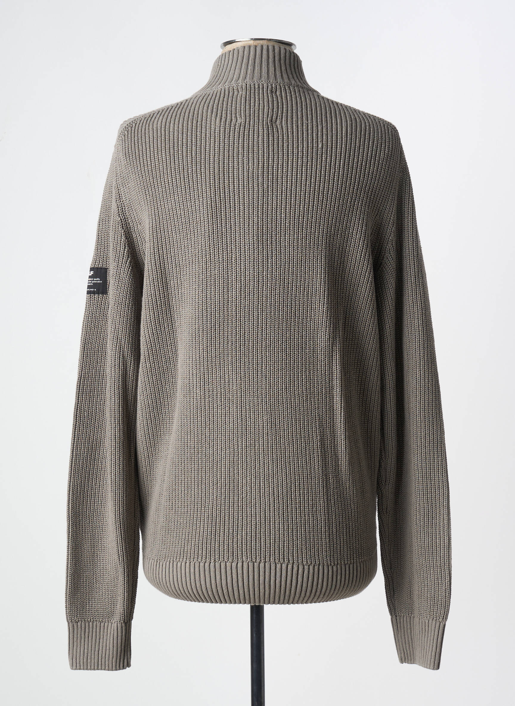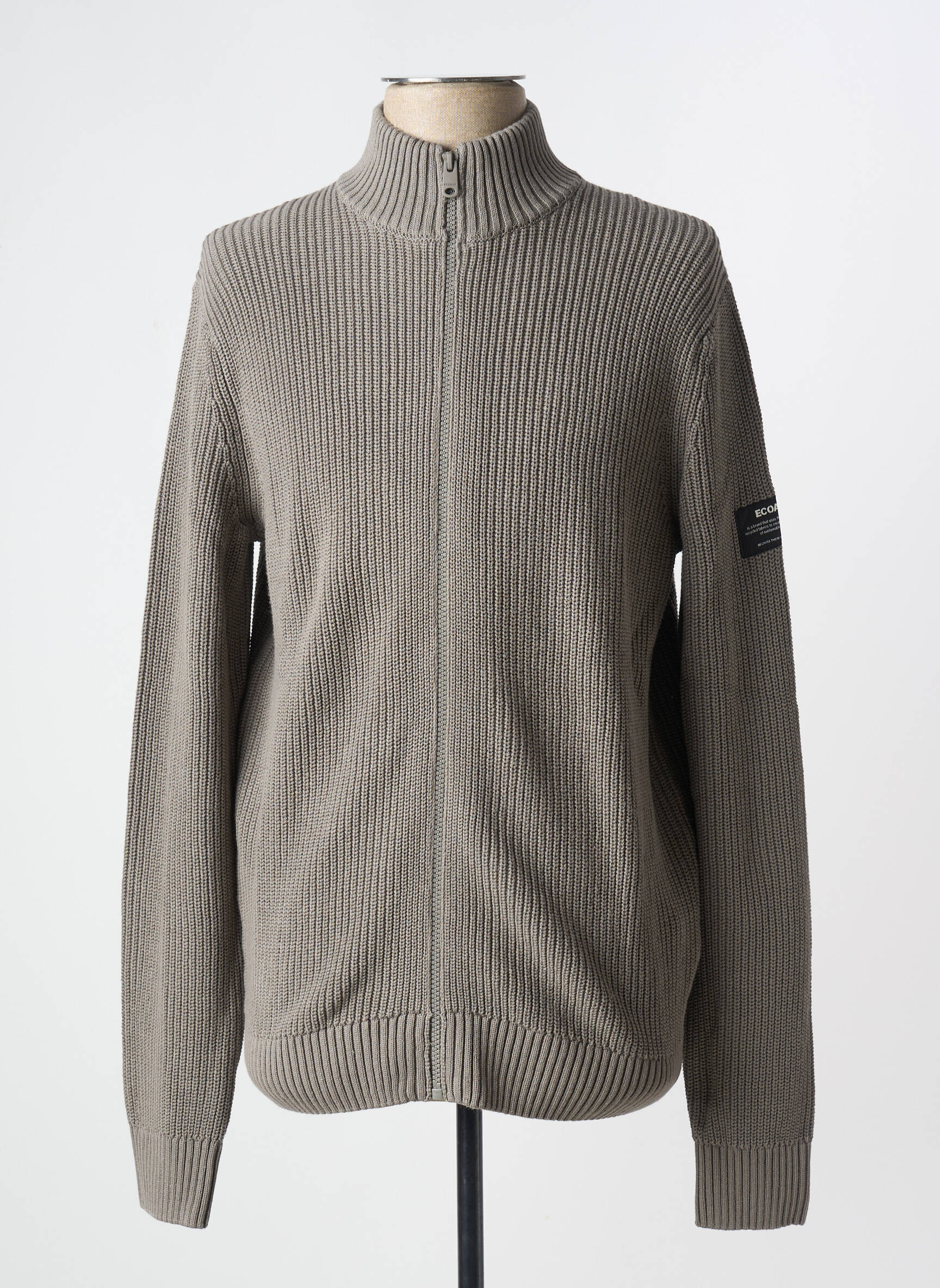 Profitez d’un gilet manches longues ECOALF à prix imbattable, parfait pour un look urbain et tendance sans vous ruiner. Ce modèle présente une coupe droite avec un col montant zippé qui apporte une touche moderne, des finitions côtelées soignées et un coloris taupe facile à assortir. Un patch siglé discret sur la manche souligne l’attention aux détails et la signature de la marque, tout en offrant un style casual polyvalent à petit prix.