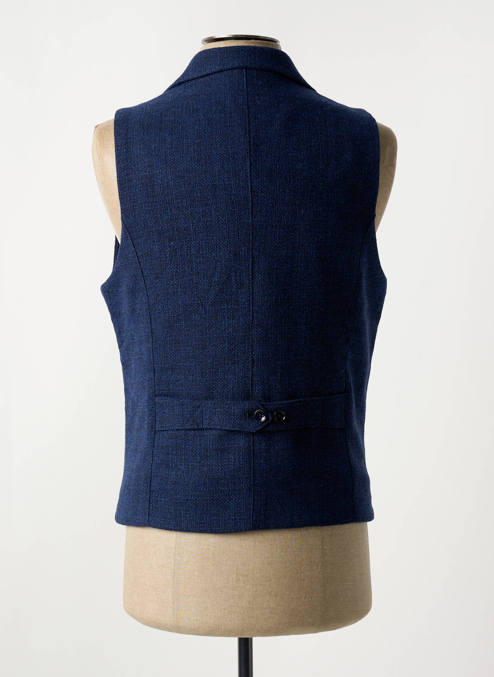 Voici l’occasion idéale de vous offrir un gilet sans manche Maison Woolies à prix réduit, parfait pour apporter une touche d’élégance intemporelle à votre vestiaire sans vous ruiner. Sa coupe moderne et ajustée met en valeur la silhouette, tandis que son coloris bleu profond et sa texture raffinée en font un allié facile à associer avec vos tenues habillées ou casual. Ce gilet est souligné par un col tailleur structuré et se ferme par une discrète boutonnière, avec deux poches passepoilées offrant une finition soignée qui complètera avec style tous vos looks, à moindre coût.