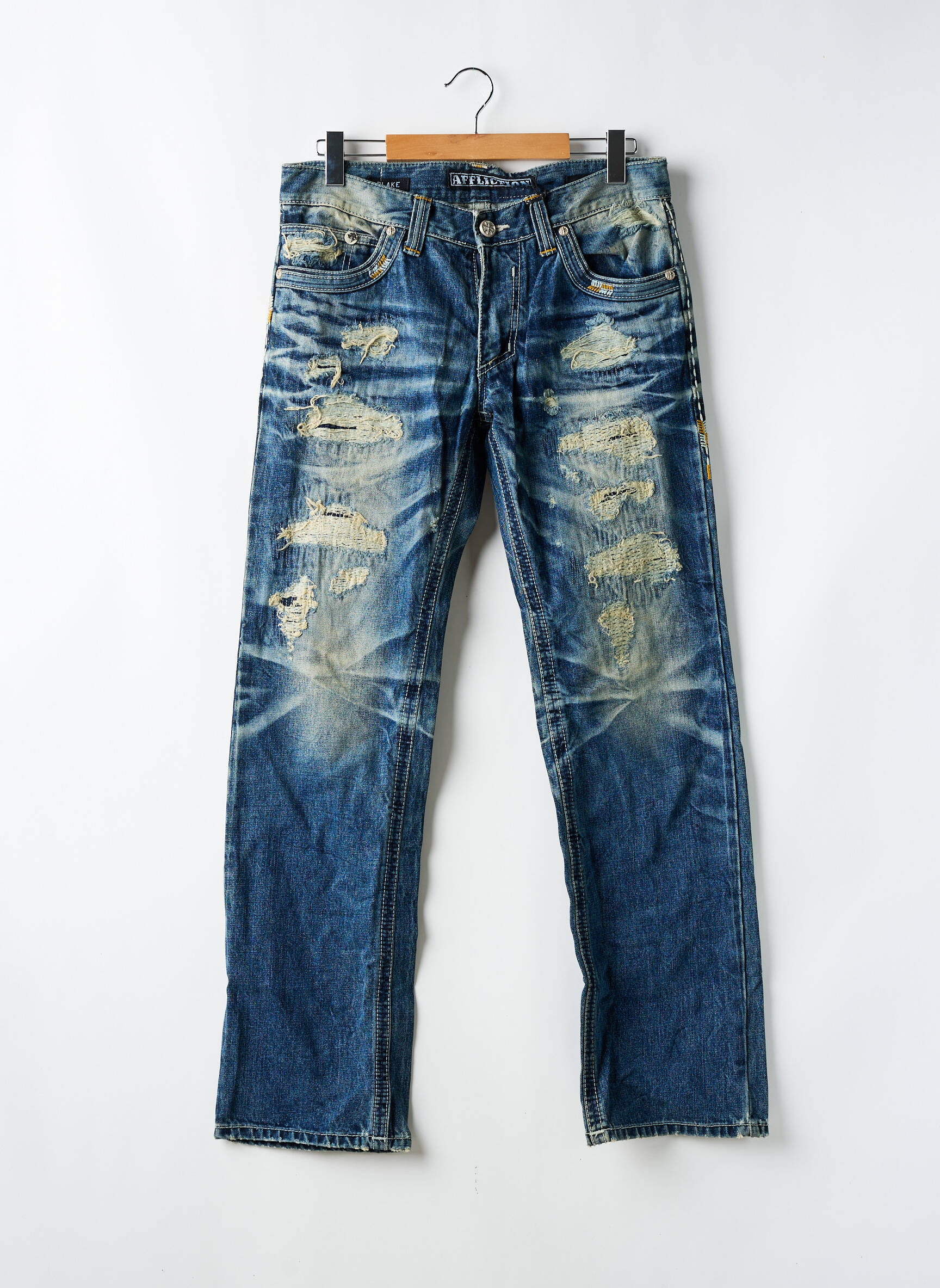 Jeans Coupe Droite Affliction Bleu Taille Normale
