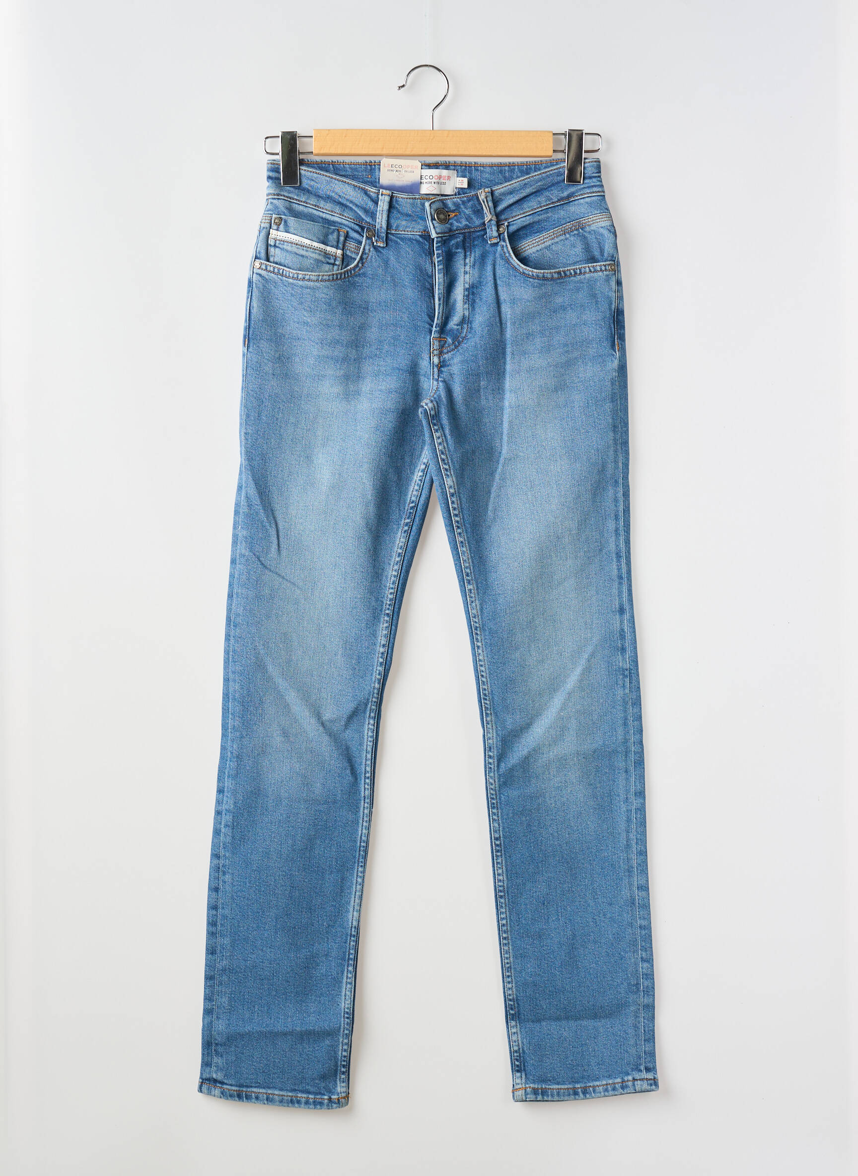 Ce jeans peut facilement se porter avec des baskets blanches et une veste légère pour une allure citadine, ou bien avec un pull ajusté et des boots pour une touche plus habillée lors des journées fraîches. Il fonctionne aussi parfaitement avec un polo ou un sweat selon vos envies et joue sur la simplicité en vous laissant libre d’ajouter vos accessoires préférés, comme une ceinture en cuir ou une montre discrète, pour compléter votre style sans effort.