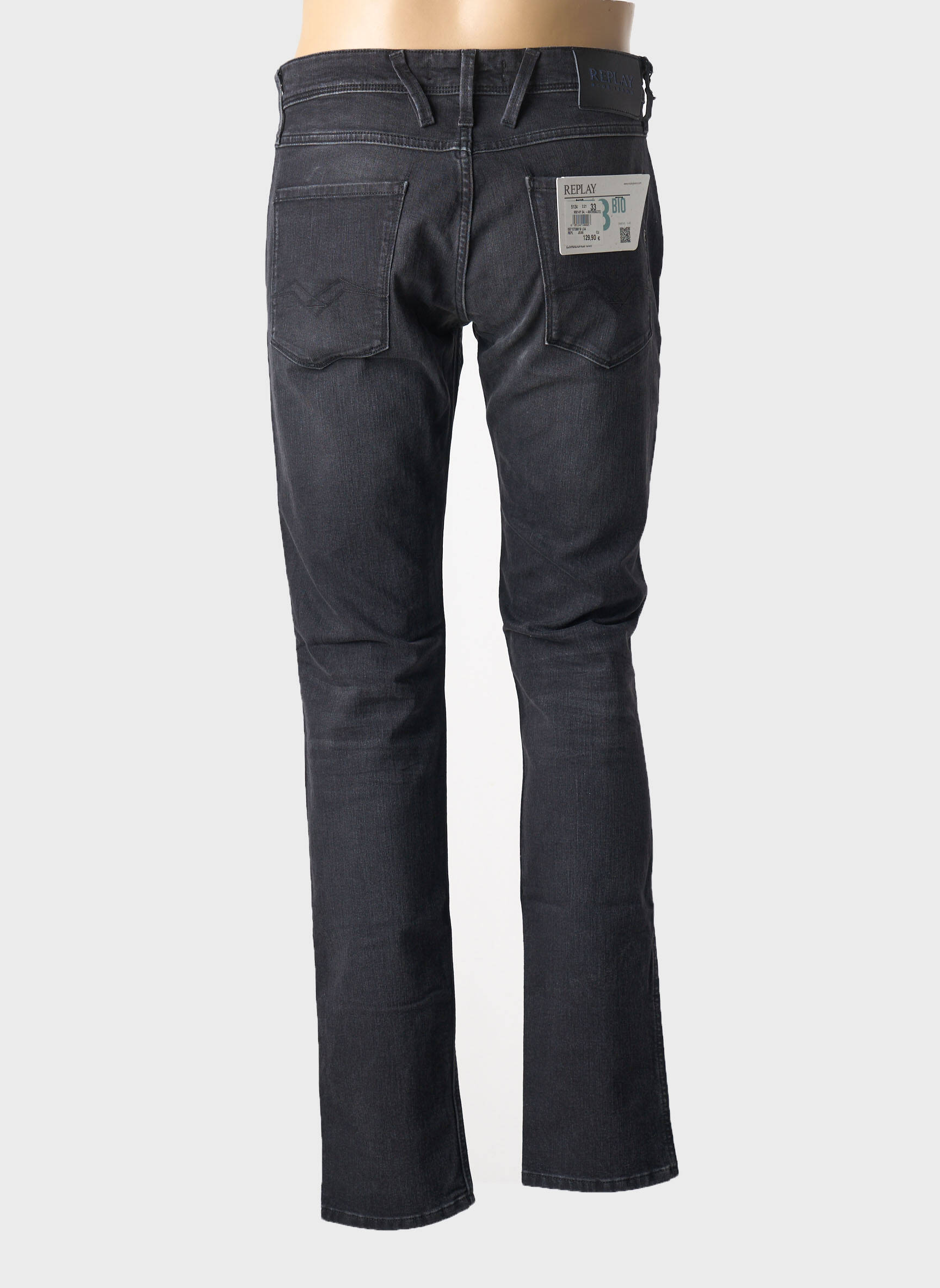 Jeans Coupe Slim Replay Noir Taille Normale