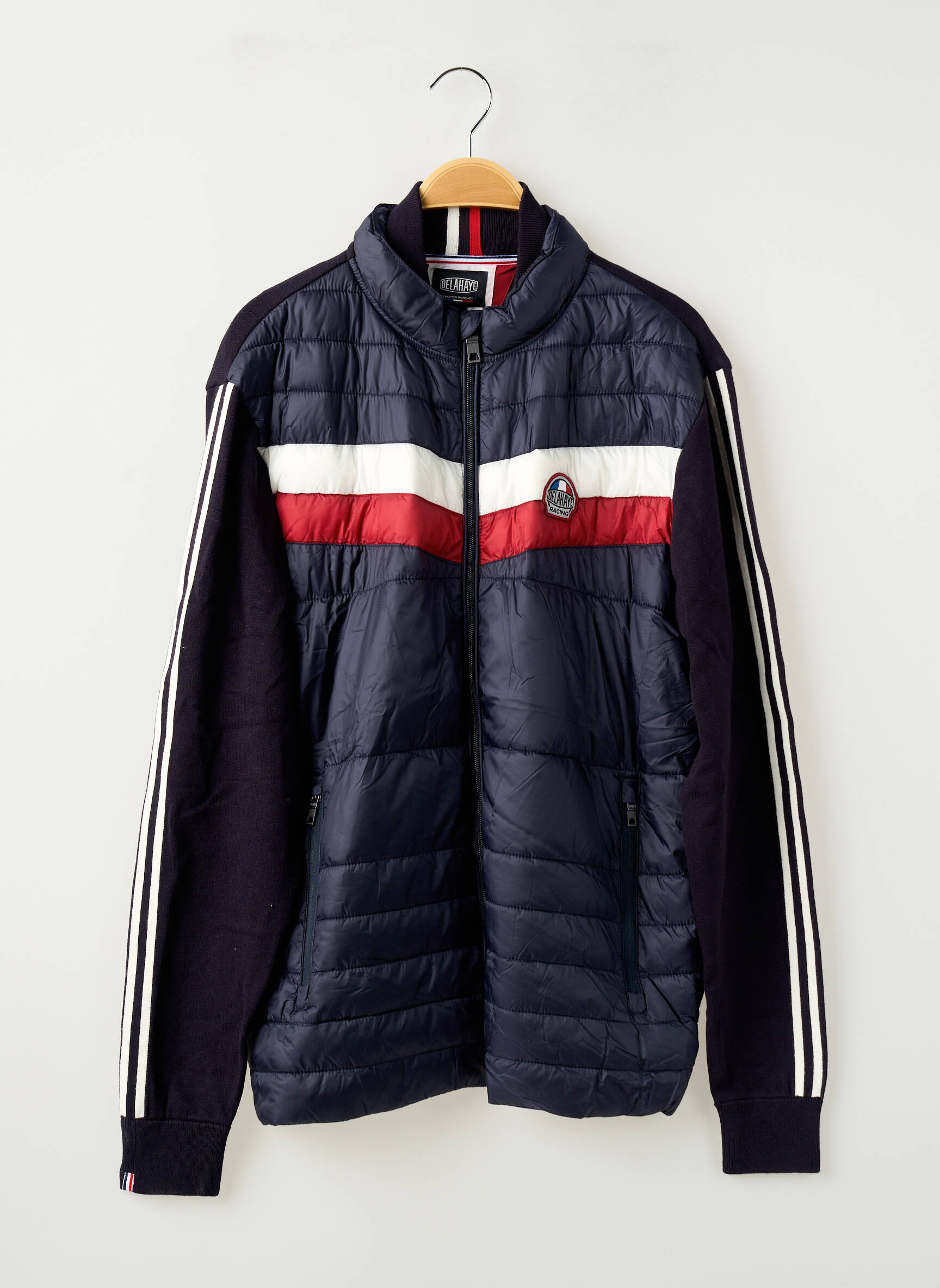 Profitez d’une affaire exceptionnelle avec cette doudoune DELAHAYE pour homme, idéale pour rester élégant sans se ruiner. Ce modèle au design sport-chic séduit par ses surpiqûres horizontales, ses manches contrastées soulignées de bandes blanches et son jeu de couleurs dynamique avec une bande rouge et blanche sur la poitrine. Légère et confortable, elle s’enfile facilement pour apporter une touche tendance à toutes vos tenues, le tout à prix malin.