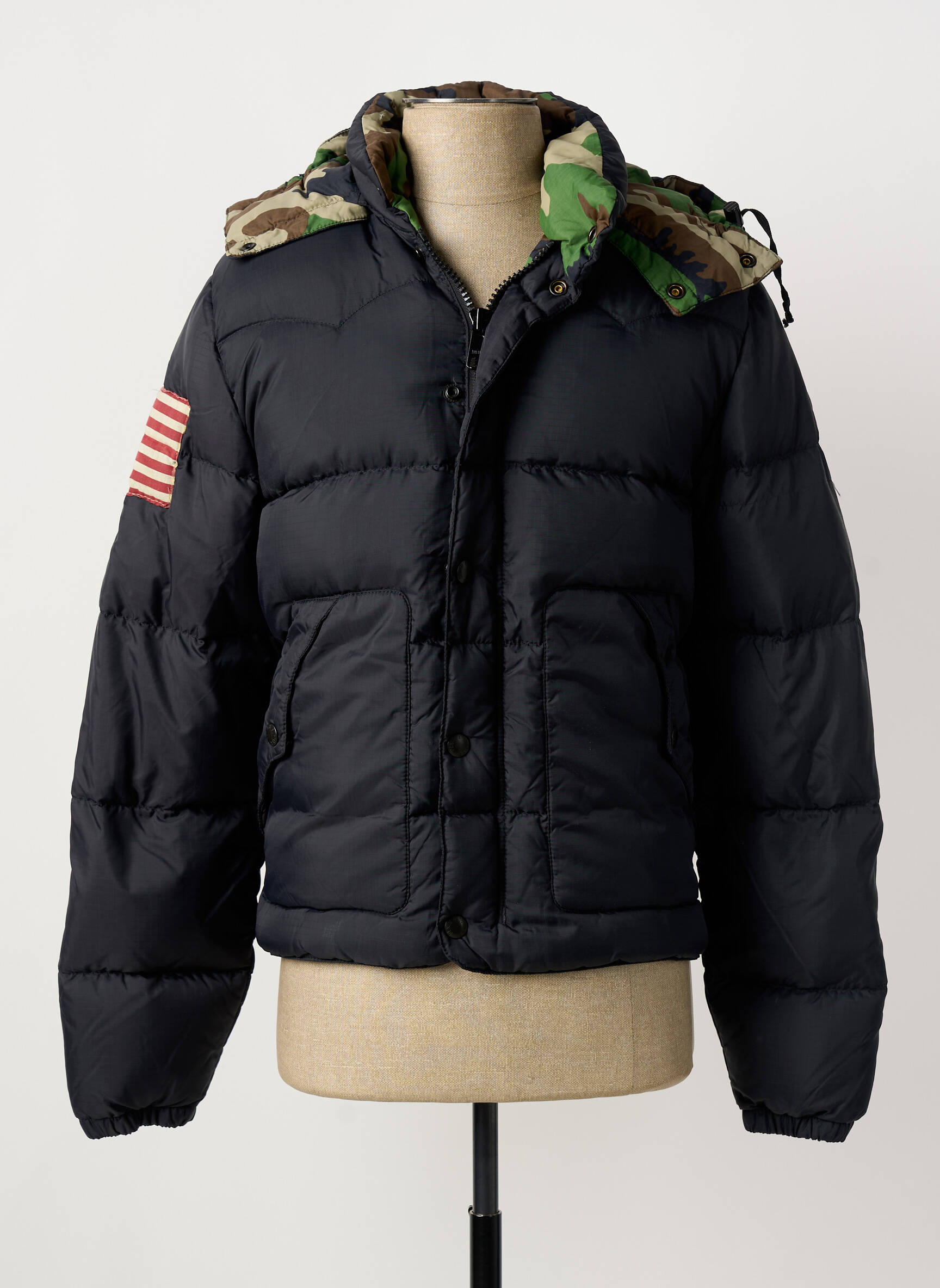 Profitez d’un excellent bon plan en vous offrant cette doudoune pour homme signée RALPH LAUREN, alliant confort et style sans compromis sur le prix. Sa coupe ample et son rembourrage généreux vous assurent une chaleur optimale, tandis que la capuche ornée d’un motif camouflage apporte une touche originale et tendance. Avec le détail du drapeau américain sur la manche et les poches fonctionnelles à l’avant, vous êtes assuré d’afficher un look urbain tout en réalisant de réelles économies sur un modèle iconique.