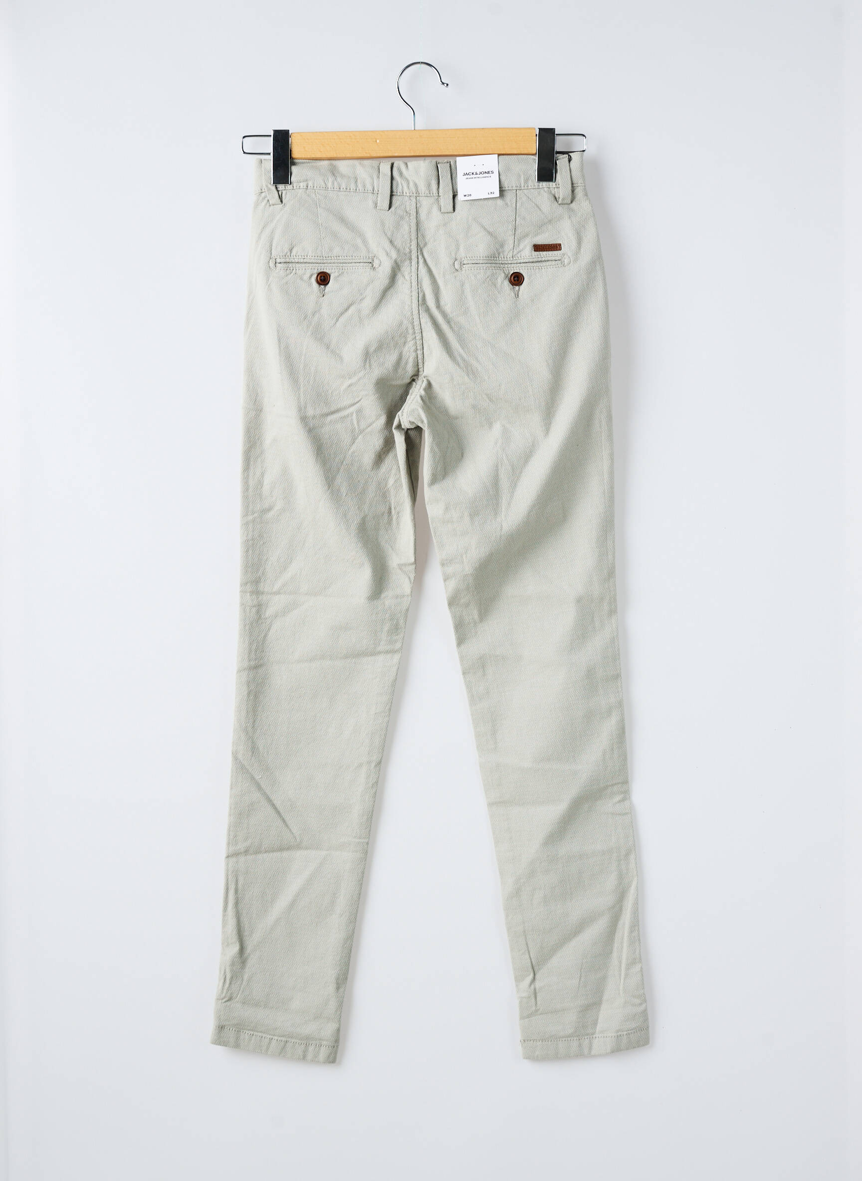 Profitez d’une occasion à ne pas manquer avec ce pantalon chino pour homme JACK & JONES, idéal pour un look casual élégant à petit prix. Sa coupe moderne et sa teinte claire s’accordent facilement avec toutes vos tenues, offrant une allure soignée et décontractée. Avec ses poches latérales et sa finition soignée, ce pantalon combine confort et style sans vous ruiner, parfait pour renouveler votre dressing à moindre coût.