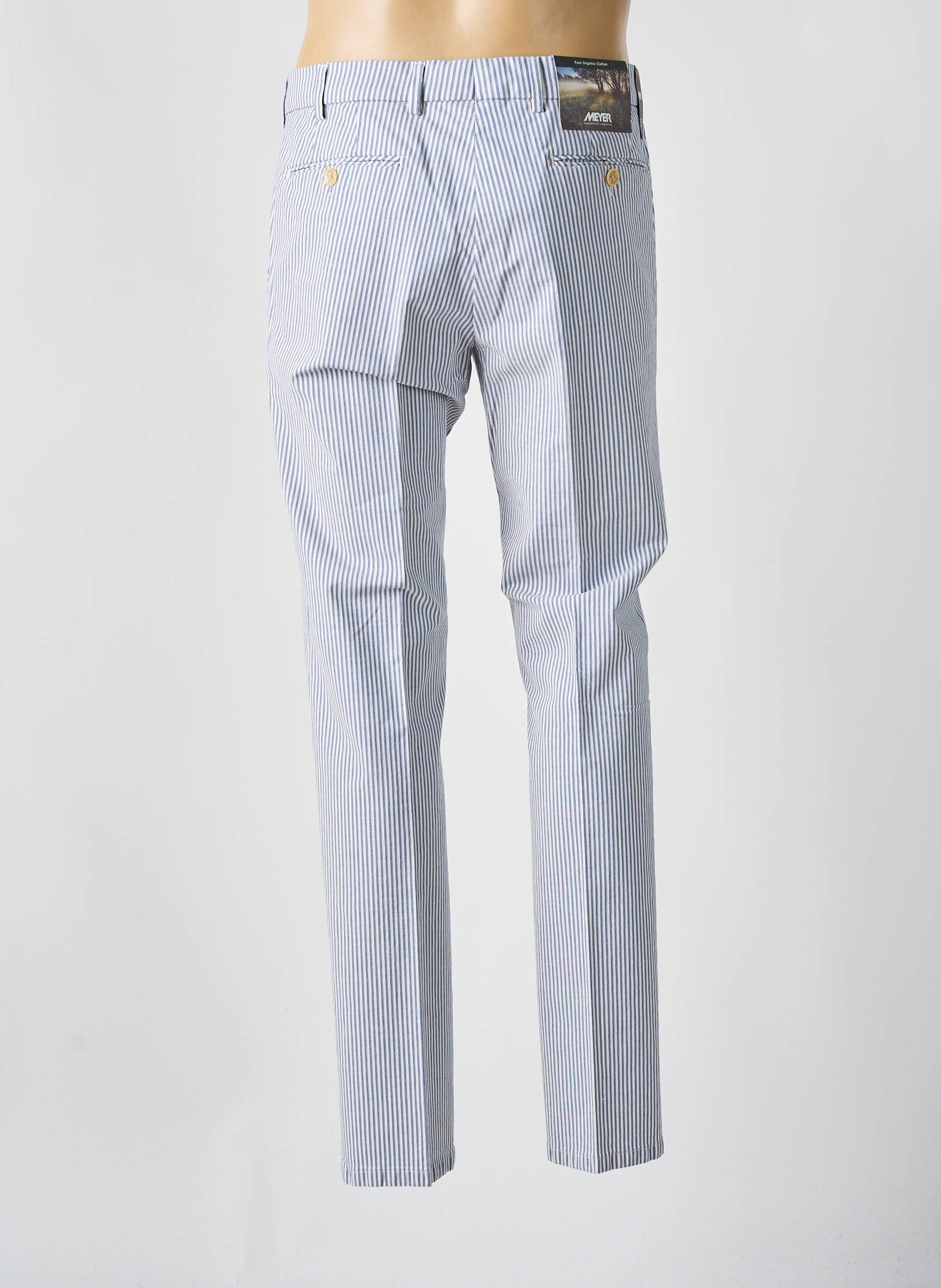 Profitez d’un bon plan incontournable avec ce pantalon chino pour homme signé MEYER, parfait pour allier élégance et confort au quotidien sans vous ruiner. Sa coupe droite légèrement ajustée s’associe à un tissu doux à fines rayures bleu clair et blanc pour un style décontracté, idéal autant pour le bureau que pour le week-end. Avec ses finitions soignées, sa fermeture boutonnée et ses poches pratiques, ce chino se distingue par sa qualité à prix malin, une véritable opportunité pour rafraîchir votre dressing à moindre coût.