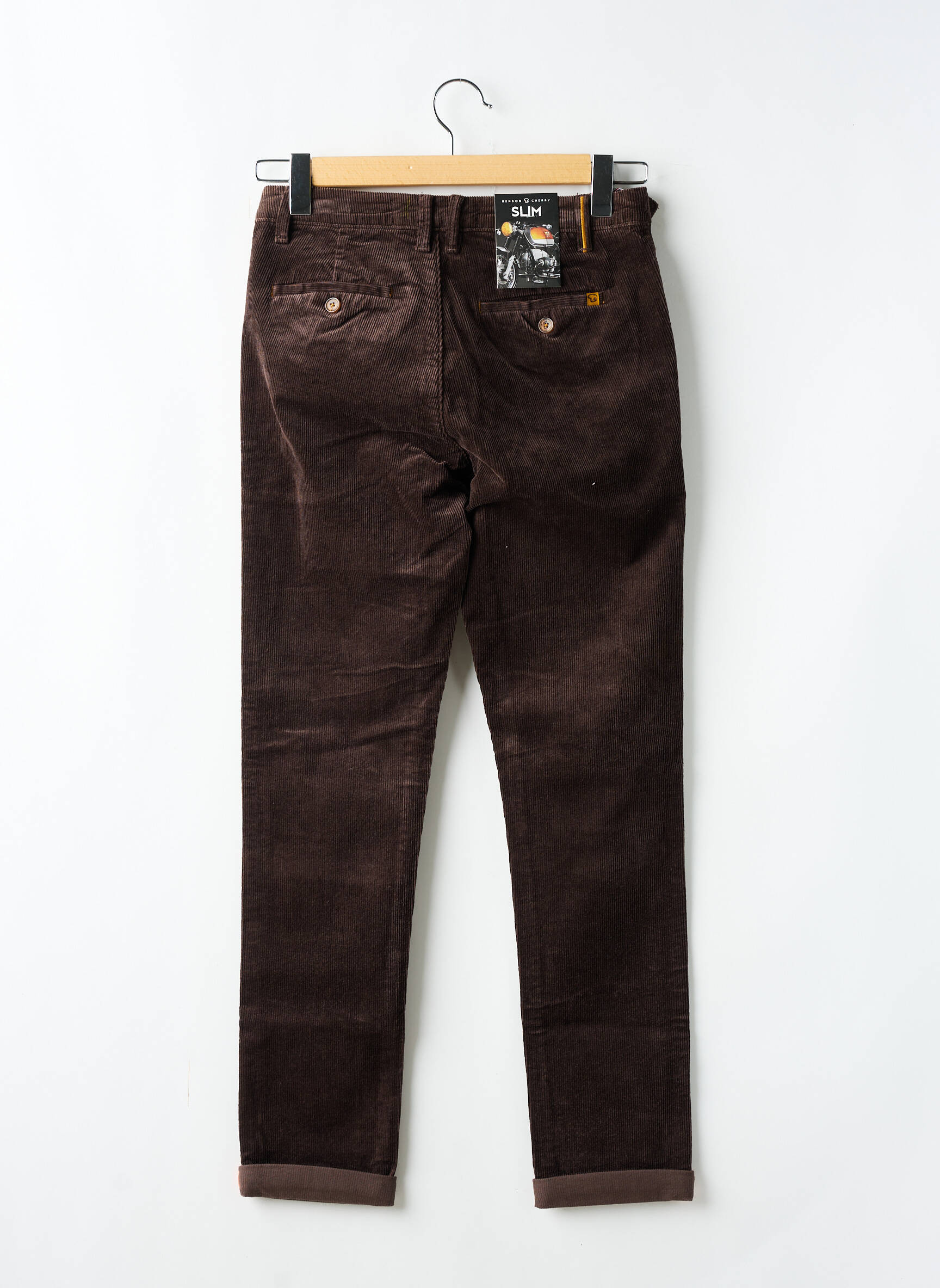 Profitez de ce bon plan avec ce pantalon slim pour homme signé BENSON & CHERRY, une pièce tendance à petit prix qui allie confort et style grâce à sa coupe ajustée et sa texture en velours côtelé marron, idéale pour donner une touche élégante et moderne à toutes vos tenues sans vous ruiner.