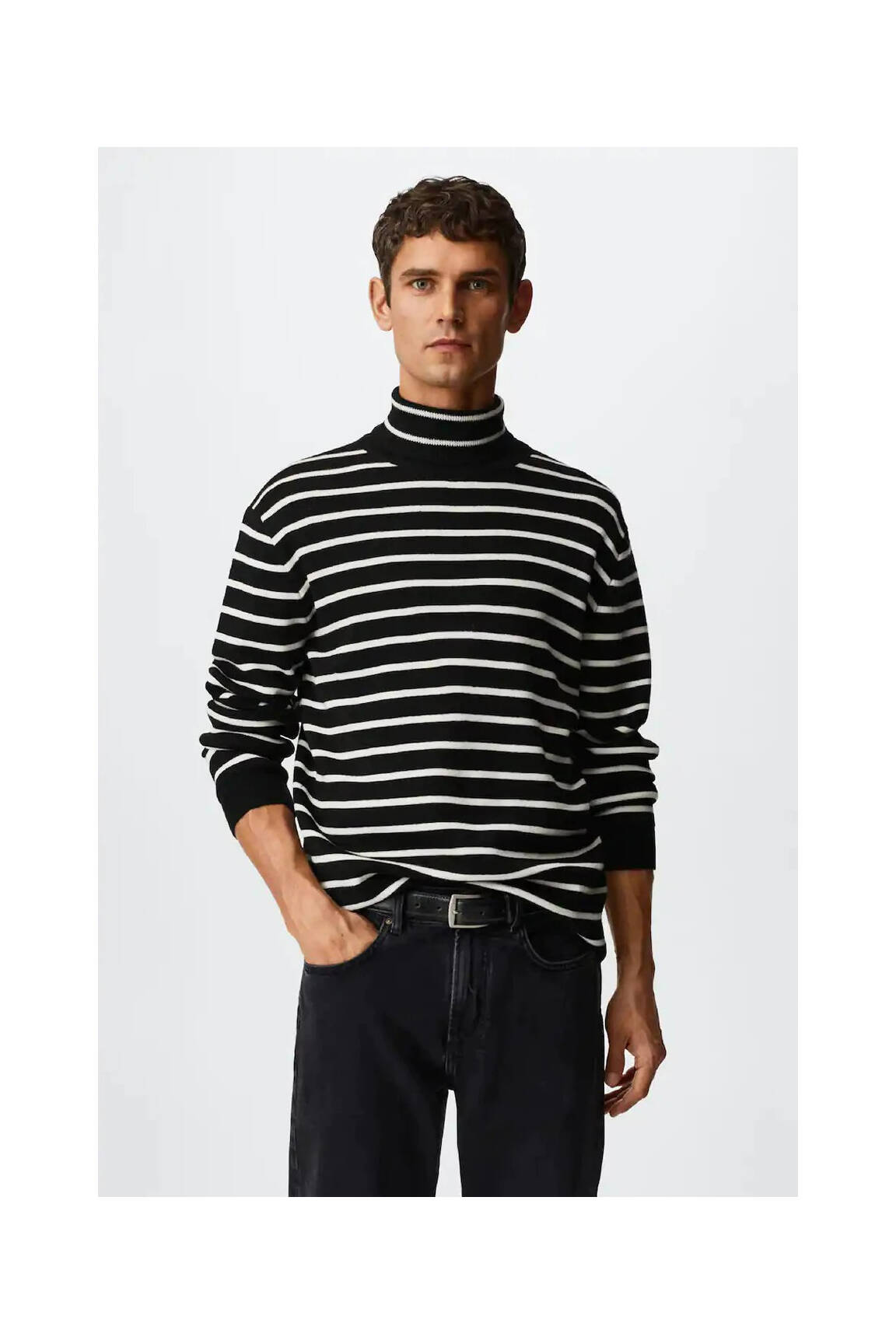 Profitez d'un vrai bon plan avec ce pull col roulé pour homme signé MANGO, idéal pour allier style et confort à petit prix. Son motif rayé noir et blanc apporte une touche graphique moderne à toutes vos tenues, tandis que la coupe droite et le col montant soulignent l’allure élégante sans effort. C'est le choix parfait pour se faire plaisir sans dépenser trop, en ajoutant une pièce tendance et facile à associer à votre dressing d’hiver.