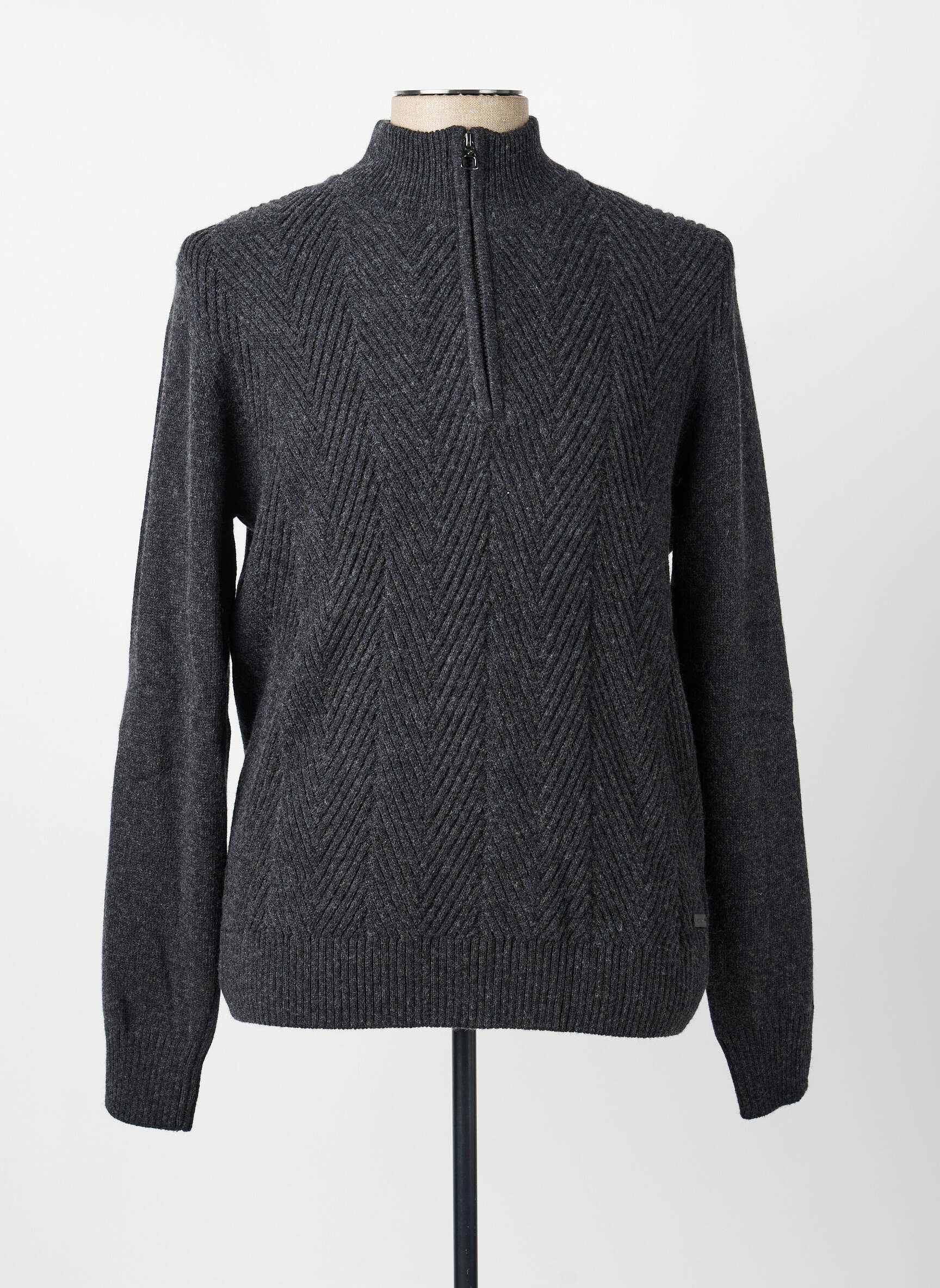 Profitez d’un vrai bon plan avec ce pull pour homme signé Pierre Cardin, proposé à prix accessible pour un look élégant sans compromis sur l’économie. Avec son coloris gris anthracite et sa maille à chevrons sophistiquée, ce pull zippé au col montant apporte une touche de raffinement tout en restant facile à associer à toutes vos tenues du quotidien. C’est la pièce idéale pour allier confort et style à petit prix.