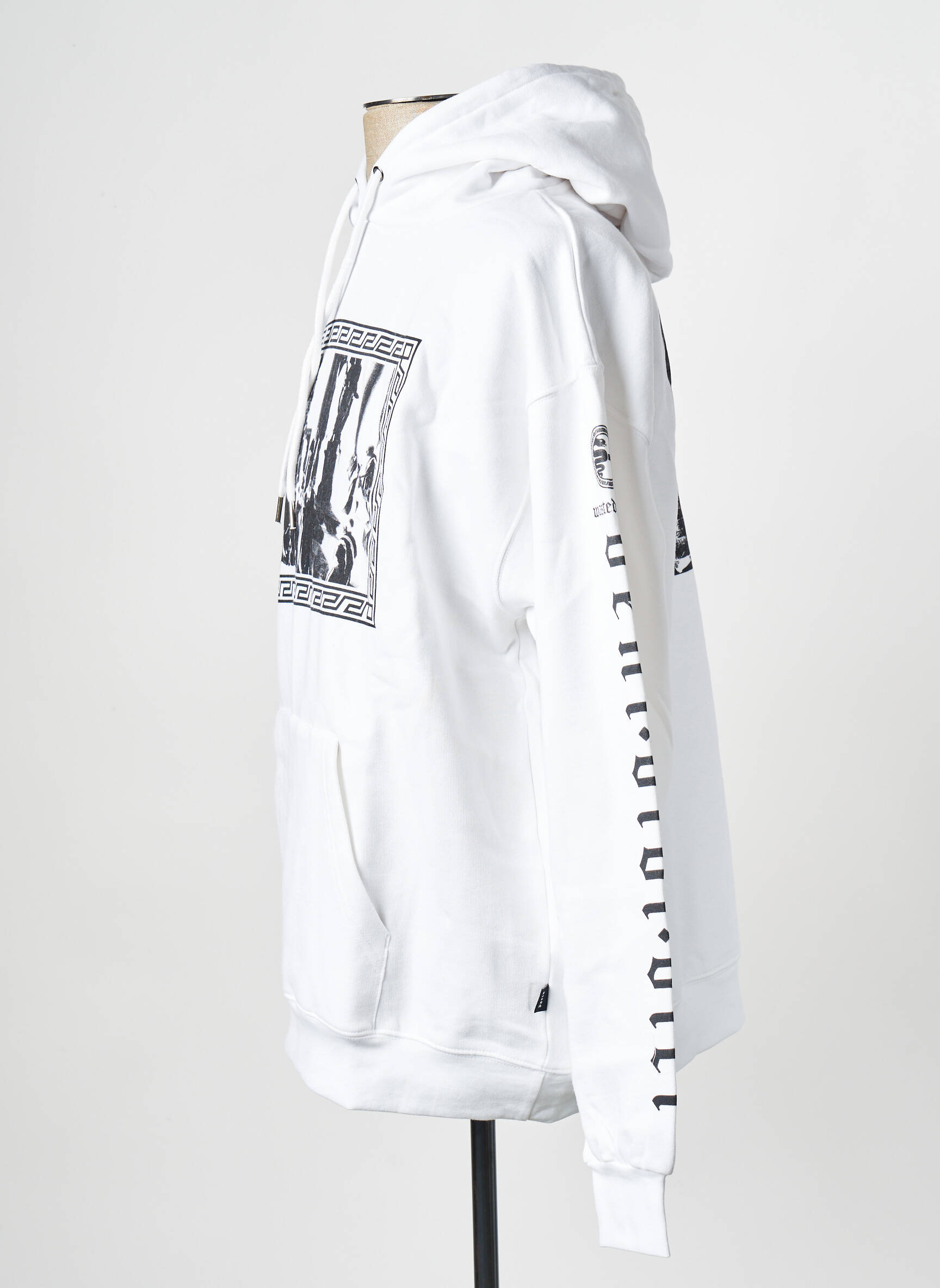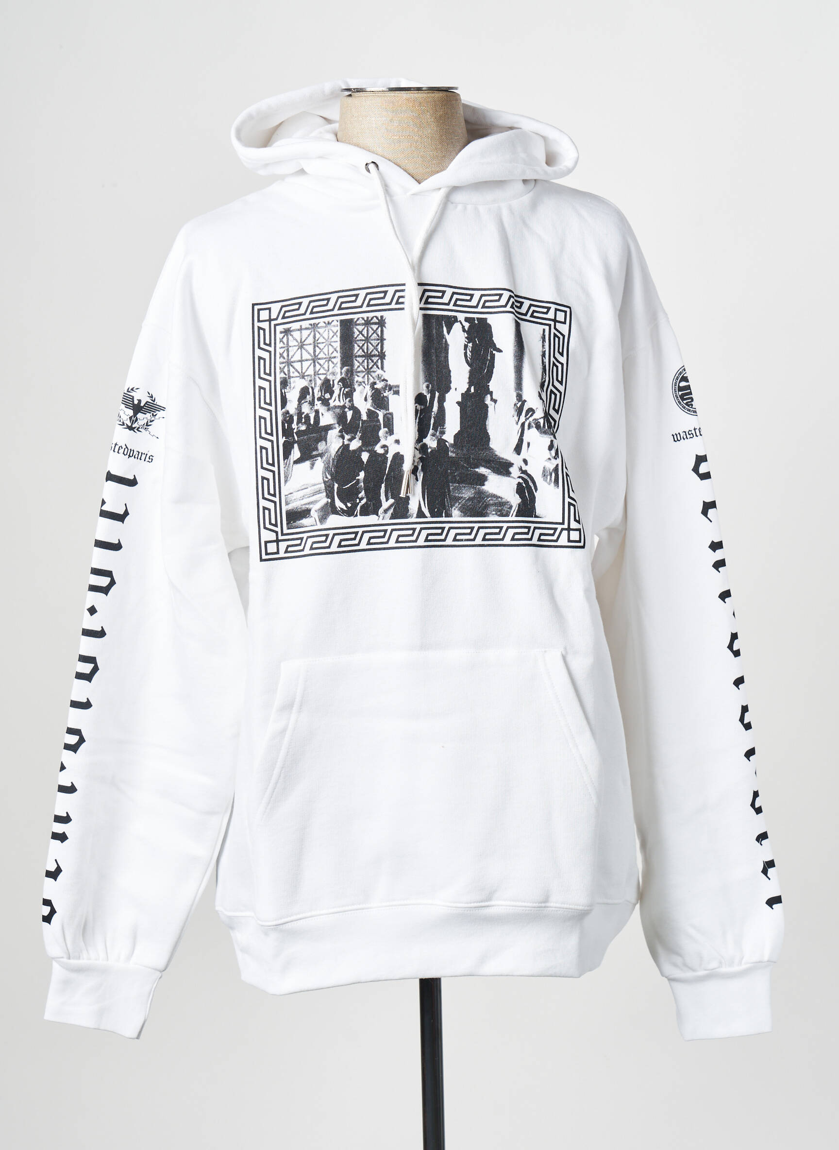 Profitez d’une occasion unique pour vous offrir ce sweat-shirt WASTED PARIS à prix réduit, une pièce incontournable pour affirmer un style urbain sans se ruiner. Sa coupe confortable s’accompagne d’un motif graphique noir et blanc sur la poitrine, encadré d’un détail façon bande grecque, qui confère au modèle une touche originale et tendance. Cette pièce se distingue aussi par ses imprimés sur les manches et la capuche, subtilement placés pour valoriser la singularité de la marque. Idéal pour compléter une tenue streetwear et profiter d’un vrai bon plan mode.