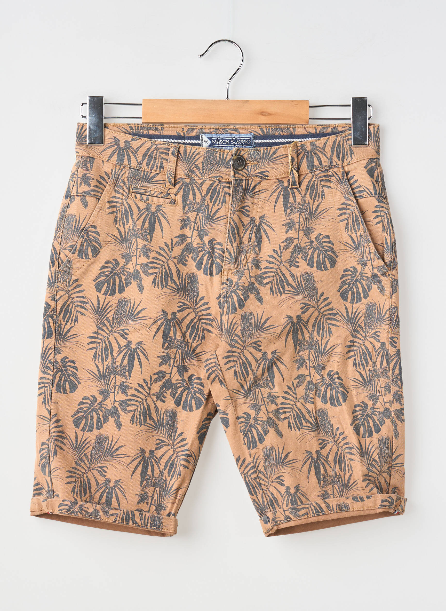 Profitez d’un vrai bon plan avec ce bermuda Maison Blaggio pour homme, idéal pour apporter une touche de style à petit prix dans votre dressing d’été. Ce modèle se distingue par sa coupe urbaine et son imprimé feuillage all-over qui assure un look tendance lors des journées les plus chaudes. Sa couleur sable rehaussée de motifs noirs lui donne une allure résolument moderne, parfaite pour les sorties ou les vacances, tout en offrant un maximum de confort et de praticité grâce à ses poches sur les côtés. C’est l’opportunité de vous offrir un bermuda chic et décontracté sans faire de compromis sur l’économie !