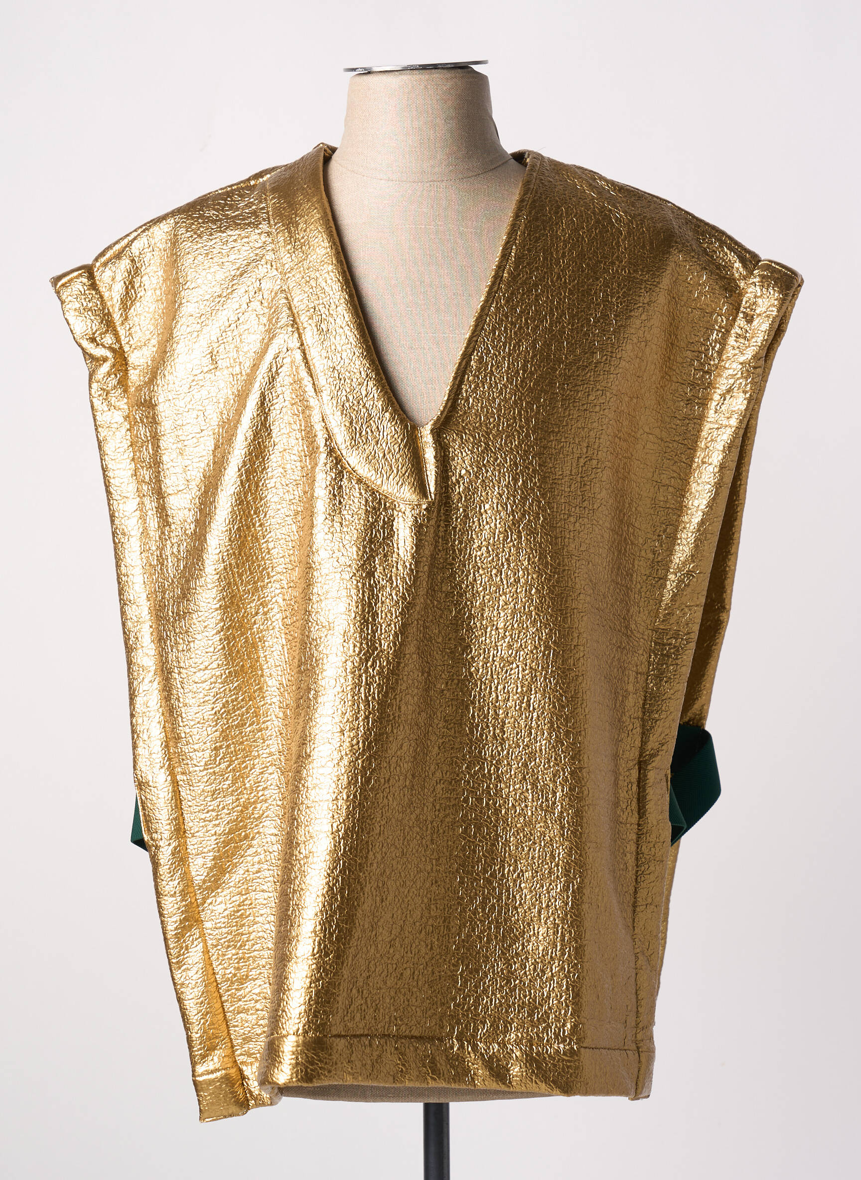 Laissez votre audace briller avec ce débardeur audacieux de la marque GUNTHER pour Homme. Sa finition dorée scintillante attire immédiatement l'œil, tandis que le design ample et sans manches offre une silhouette décontractée mais mémorable. Le décolleté en V apporte une touche de sophistication, tandis que l'arrière peut révéler une fine touche de couleur contrastante, ajoutant une dimension intéressante à cet article résolument moderne. Parfait pour des occasions festives ou pour faire une déclaration stylistique au quotidien, ce débardeur incarne une esthétique unique et contemporaine.