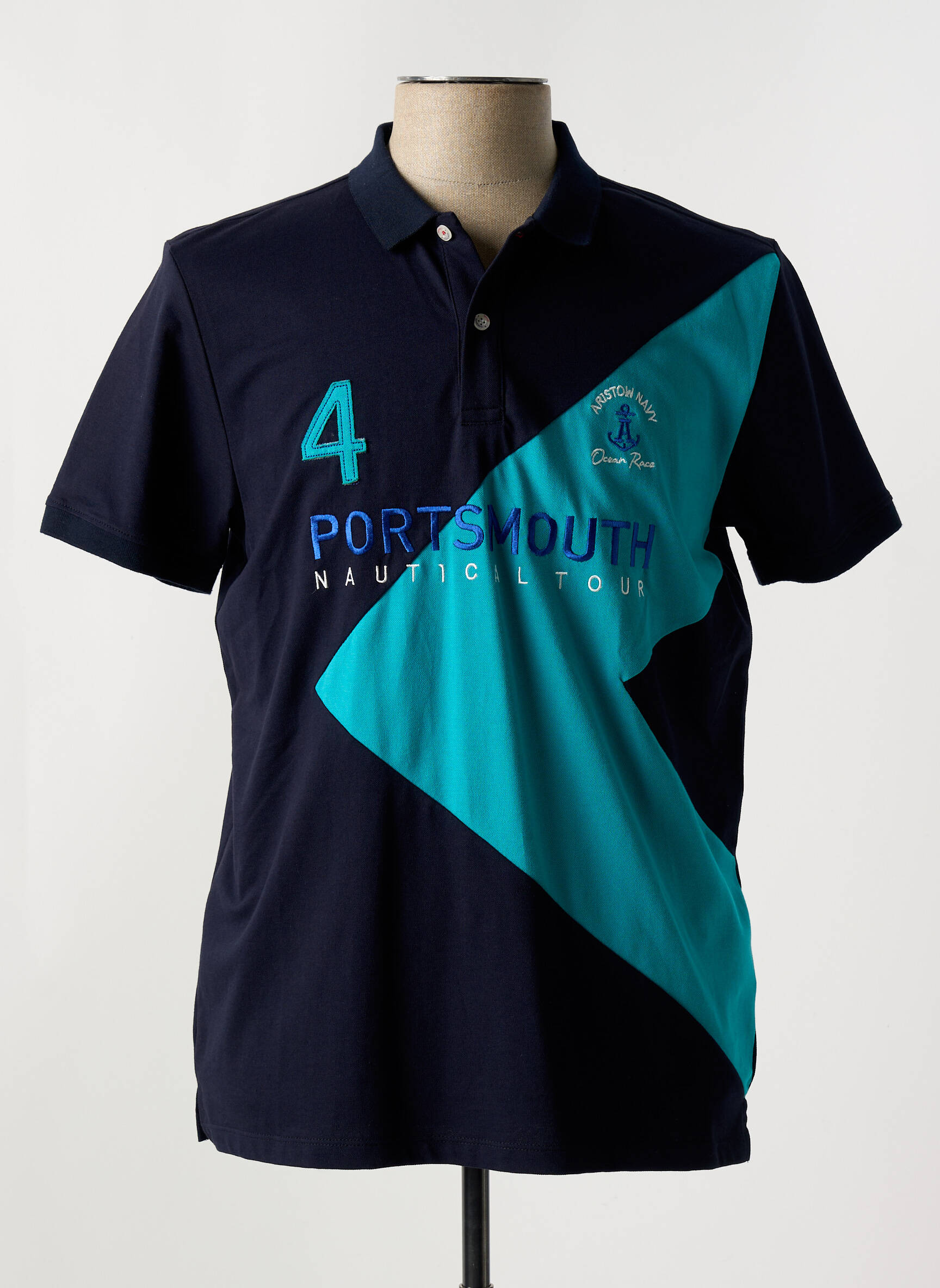 Imaginez embarquer pour une aventure nautique sans quitter la terre ferme grâce à ce polo ARISTOW pour homme où l’élégance classique rencontre une touche sportive audacieuse. Ce modèle se distingue par un grand motif en forme de flèche turquoise qui traverse en diagonale le corps sombre du polo, rehaussé d’un numéro "4" brodé sur la poitrine, accompagné de l’inscription "PORTSMOUTH NAUTIC TOUR" soulignant son esprit marin avec subtilité et raffinement. La coupe traditionnelle à manches courtes et le col à boutons apportent à cet article un équilibre parfait entre décontraction et sophistication.