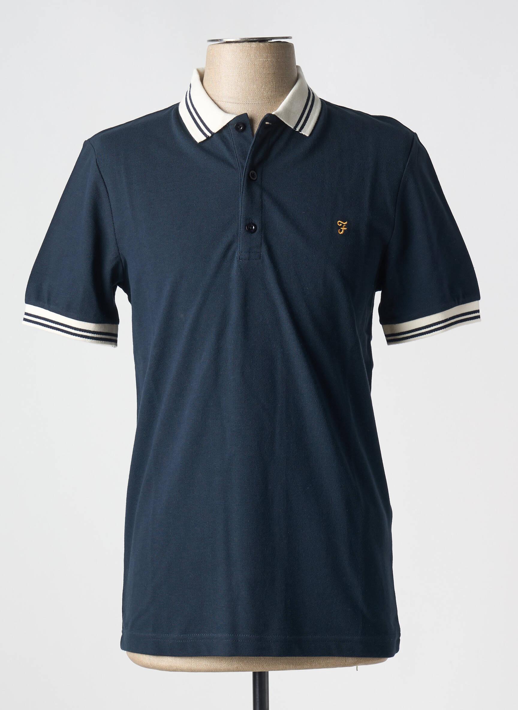 Profitez d’un excellent rapport qualité-prix avec ce polo FARAH pour homme, un basique incontournable à petit prix. Son coloris bleu marine rehaussé de détails contrastés blancs sur le col et les manches lui donne une allure élégante et moderne, tandis que le logo discret brodé sur la poitrine apporte LA touche signature de la marque. Cette pièce indispensable sera parfaite aussi bien au quotidien qu’en sortie, idéale pour compléter votre garde-robe sans vous ruiner.