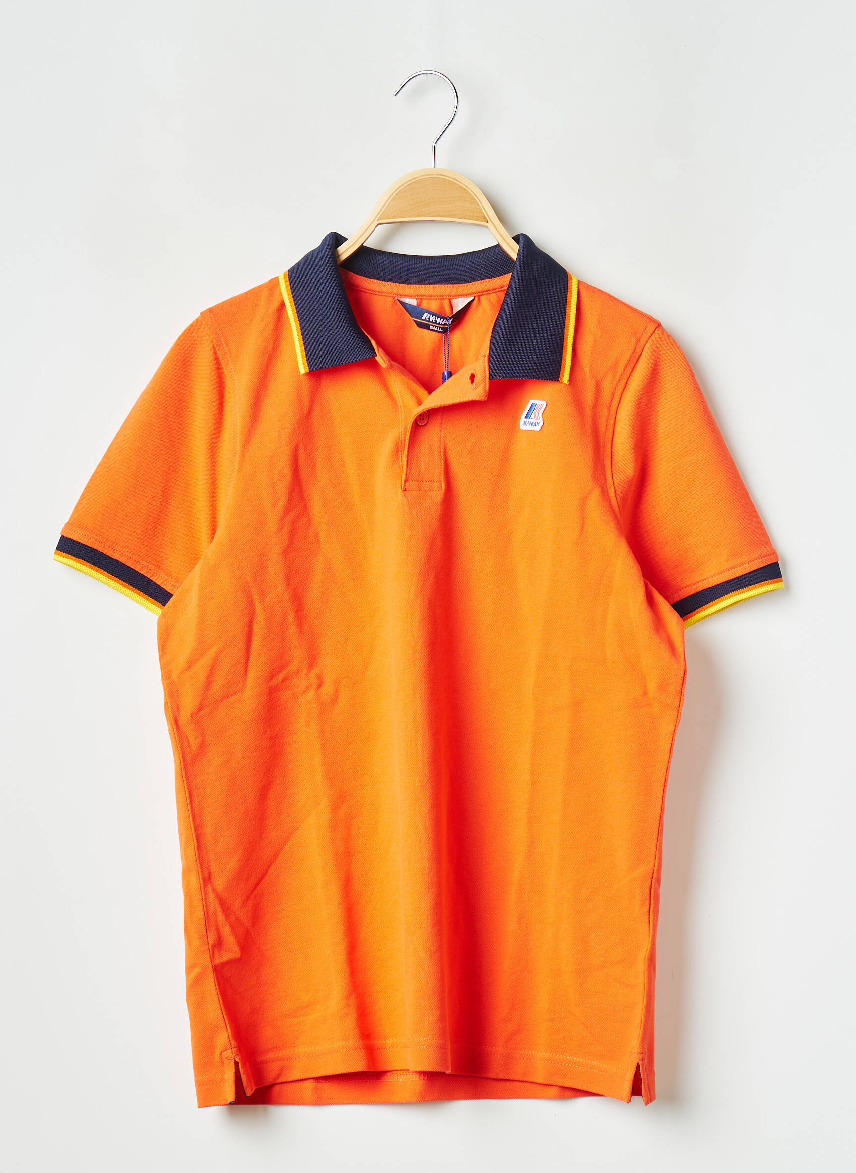 Profitez d’un véritable bon plan avec ce polo pour homme signé K. WAY qui allie style et économie. Ce modèle arbore une teinte orange vitaminée, rehaussée d’un col contrastant bleu marine souligné par une fine touche jaune, pour une finition moderne et dynamique. Idéal pour apporter une note originale à vos tenues du quotidien, ce polo au look sportif et élégant vous permet de vous démarquer tout en maîtrisant votre budget.