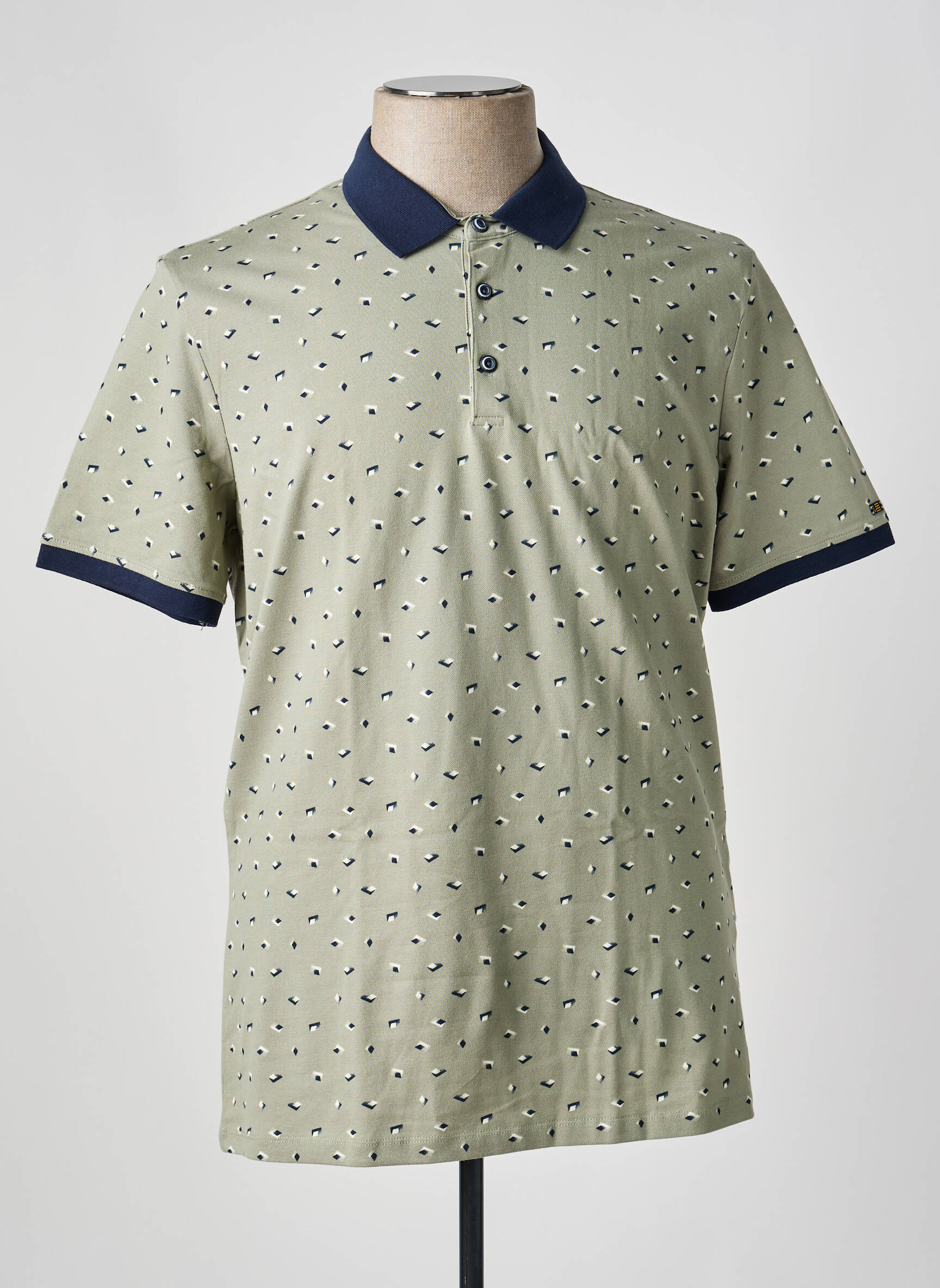 Ce polo NO EXCESS pour homme constitue l’affaire à ne pas manquer pour apporter de la fraîcheur et du style à votre garde-robe à petit prix. On apprécie son motif discret et tendance sur fond kaki clair, rehaussé par un col et des manches contrastants bleu marine qui ajoutent une touche moderne à son allure casual. C’est une pièce facile à porter au quotidien, idéale pour ceux qui aiment profiter de looks soignés sans se ruiner.